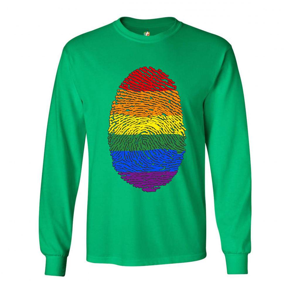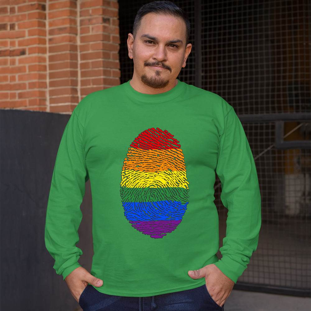 RAINBOW FINGERPRINT long sleeve t-shirt gay pride month lgbtq support ally green