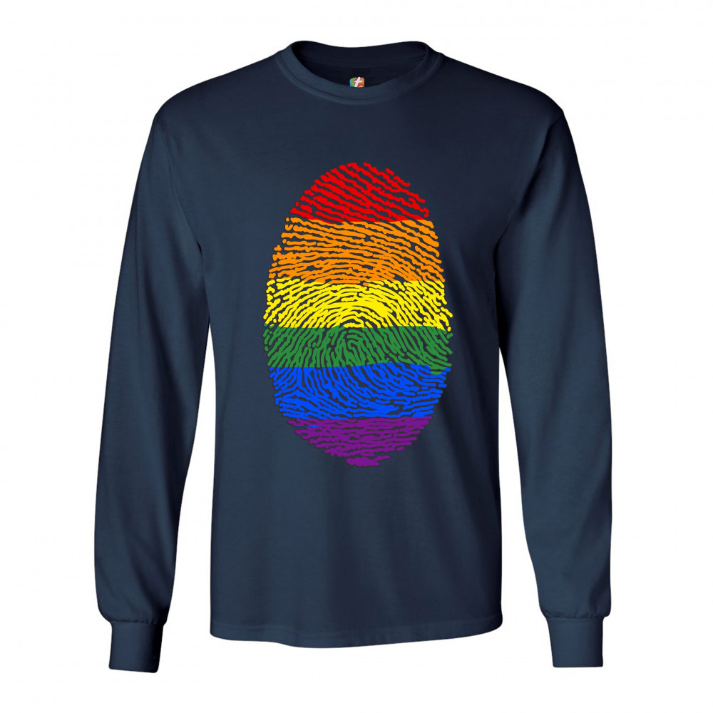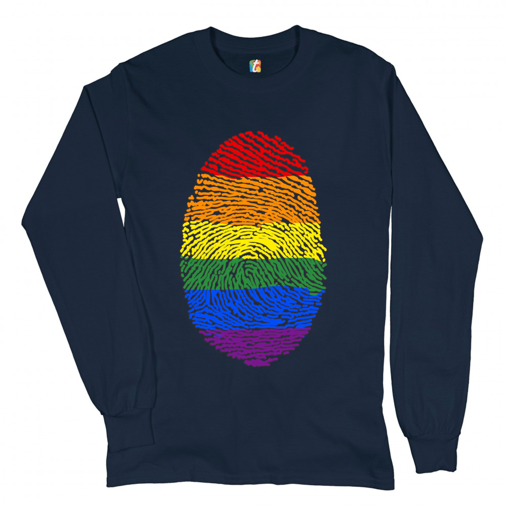 RAINBOW FINGERPRINT long sleeve t-shirt gay pride month lgbtq support ally navy blue