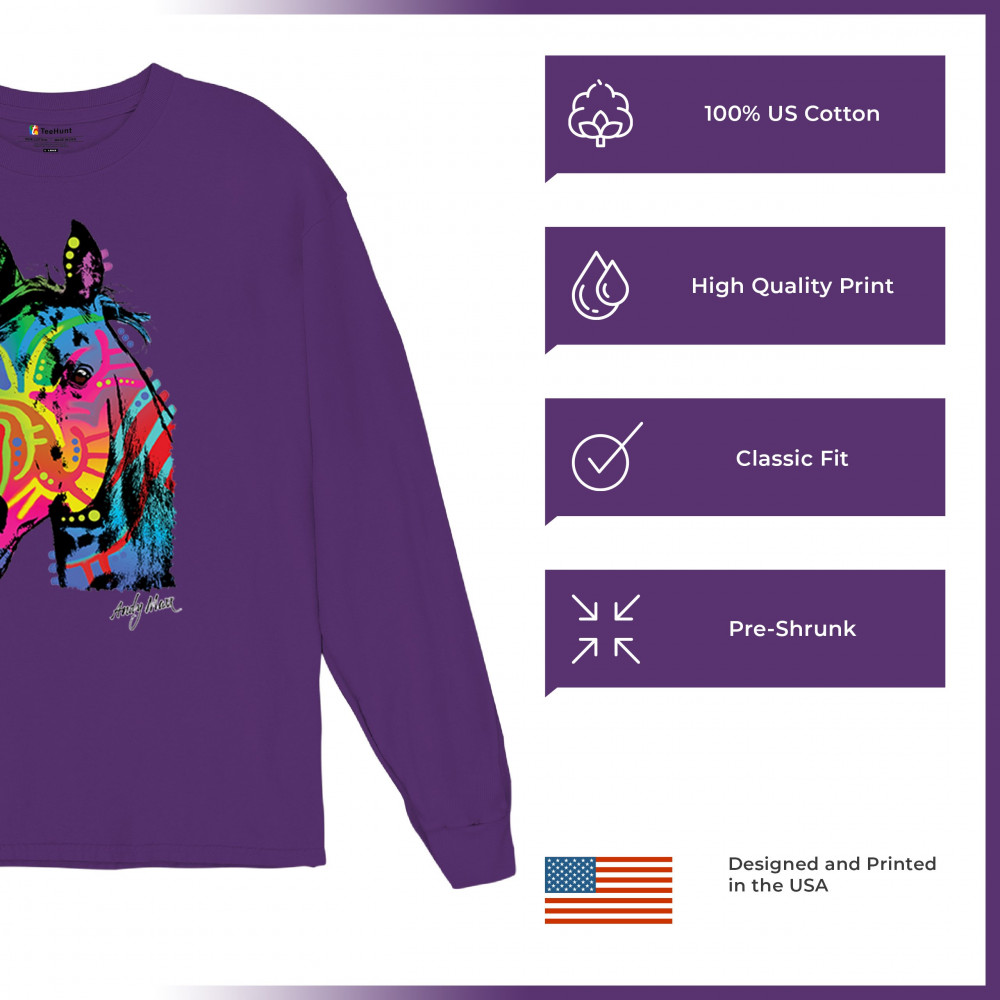 Bold rainbow horse head design with abstract pop art style. Great for equestrians, color lovers, and fans of modern animal artwork.