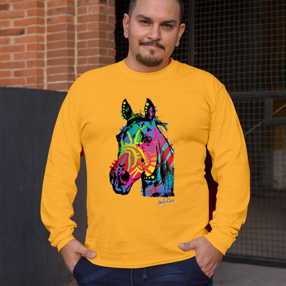 Celebrate your love for horses and art with this eye-catching multicolored horse head design. Packed with bold neon shades, abstract patterns, and expressive linework, it radiates motion and energy. A perfect fusion of animal beauty and pop art creativity, ideal for equestrians, art lovers, and color-forward trendsetters alike.