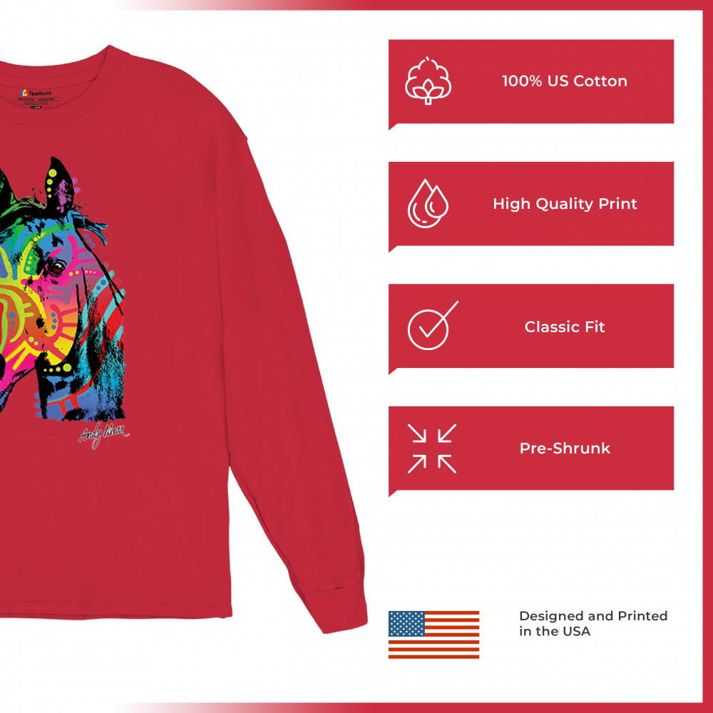 Bold rainbow horse head design with abstract pop art style. Great for equestrians, color lovers, and fans of modern animal artwork.
