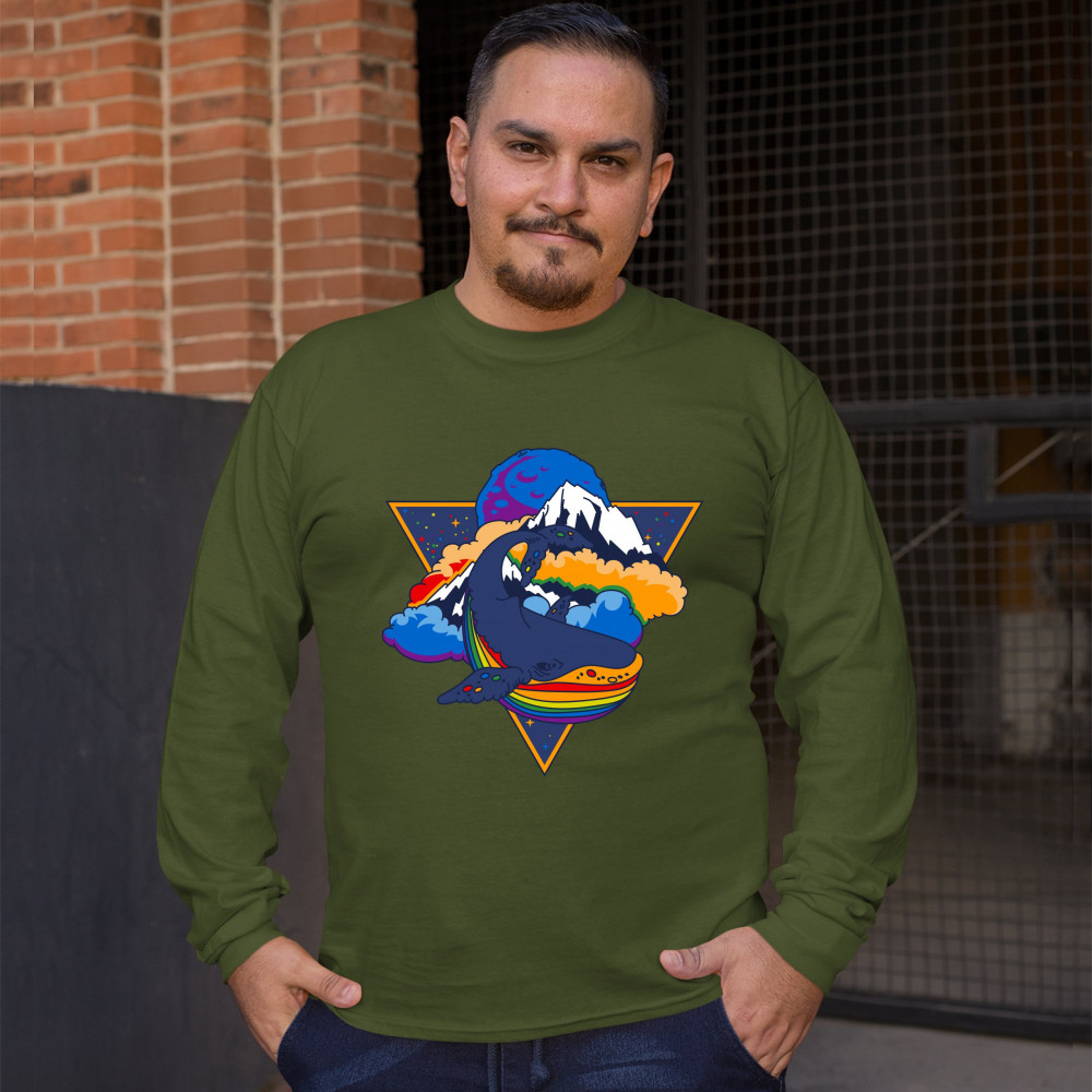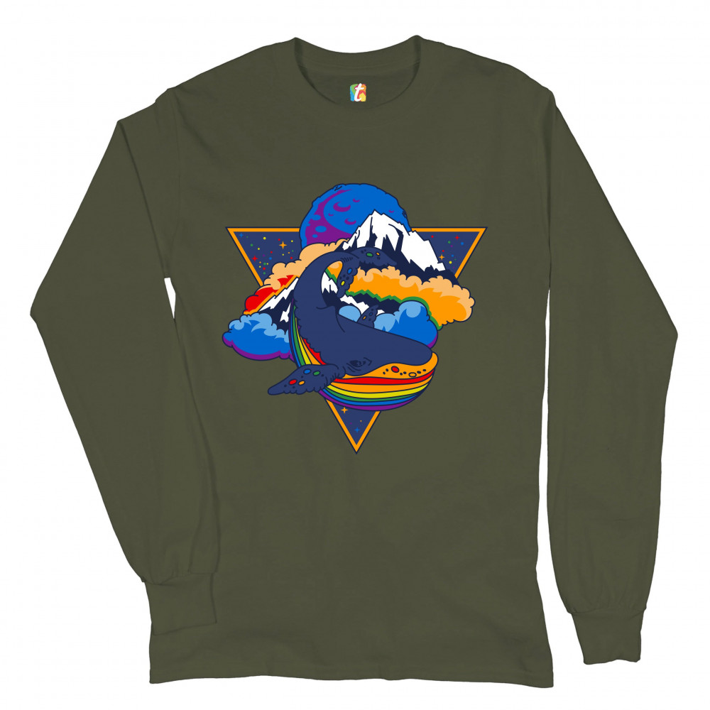RAINBOW SPACE WHALE long sleeve t-shirt lgbt pride queer tolerance trippy military green