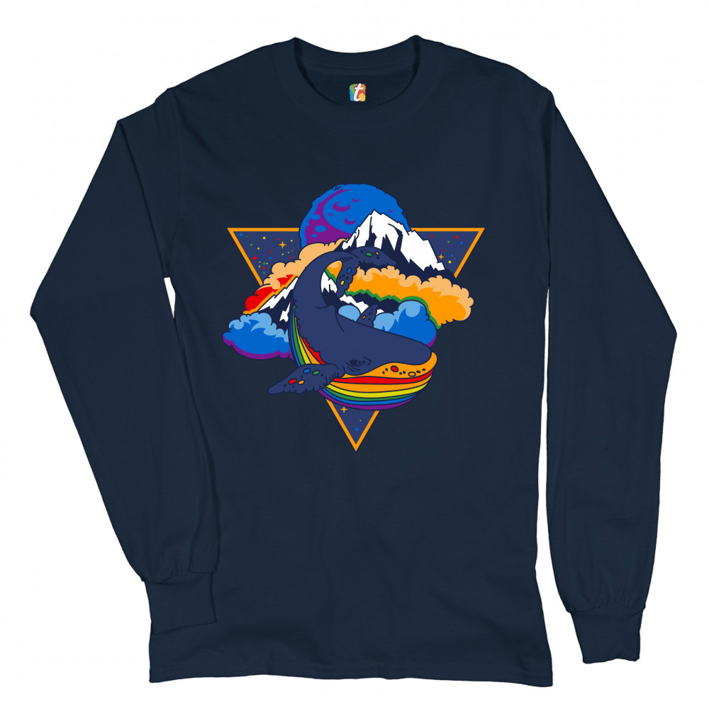 RAINBOW SPACE WHALE long sleeve t-shirt lgbt pride queer tolerance trippy navy blue