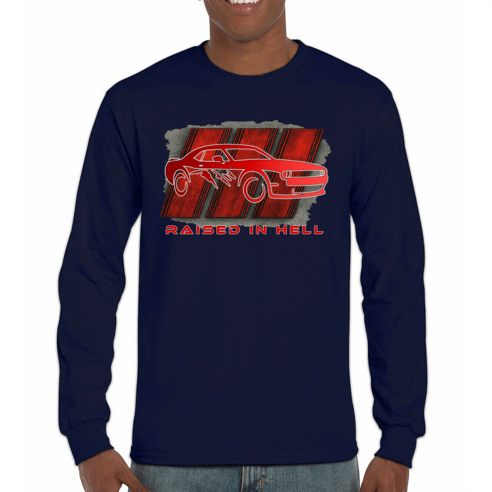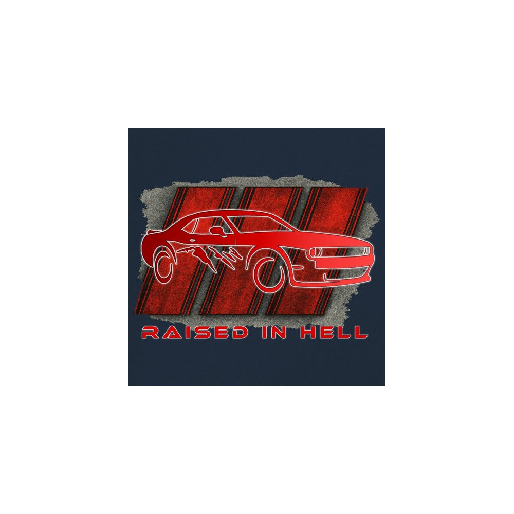 Bring heat to the streets with this Raised in Hell design. Featuring a blazing red muscle car and aggressive claw marks, it's perfect for Scat Pack lovers, burnout warriors, and throttle addicts. Whether you're tearing down the strip or parked at the meet, this design delivers pure muscle attitude and street-born fire.