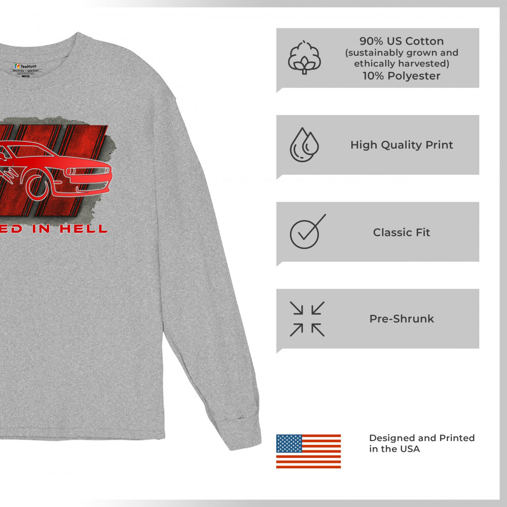 Bring heat to the streets with this Raised in Hell design. Featuring a blazing red muscle car and aggressive claw marks, it's perfect for Scat Pack lovers, burnout warriors, and throttle addicts. Whether you're tearing down the strip or parked at the meet, this design delivers pure muscle attitude and street-born fire.