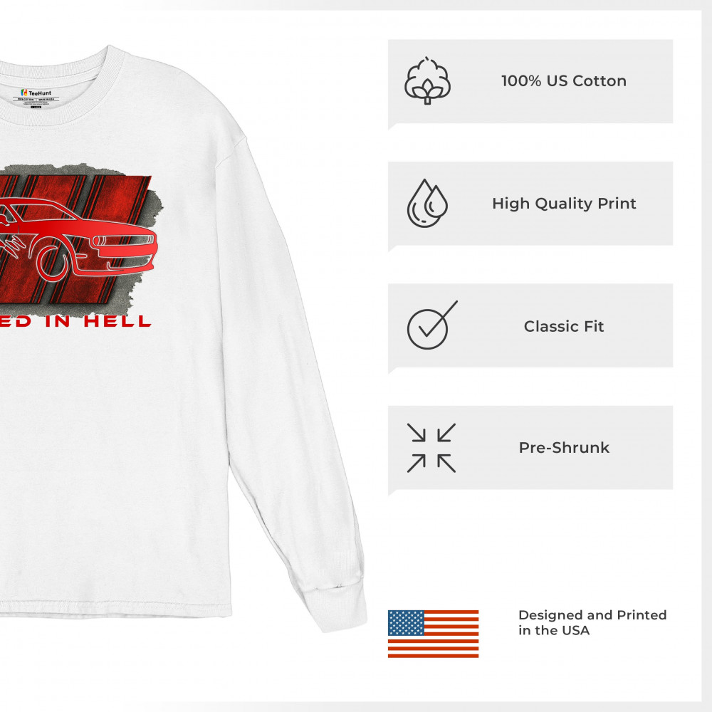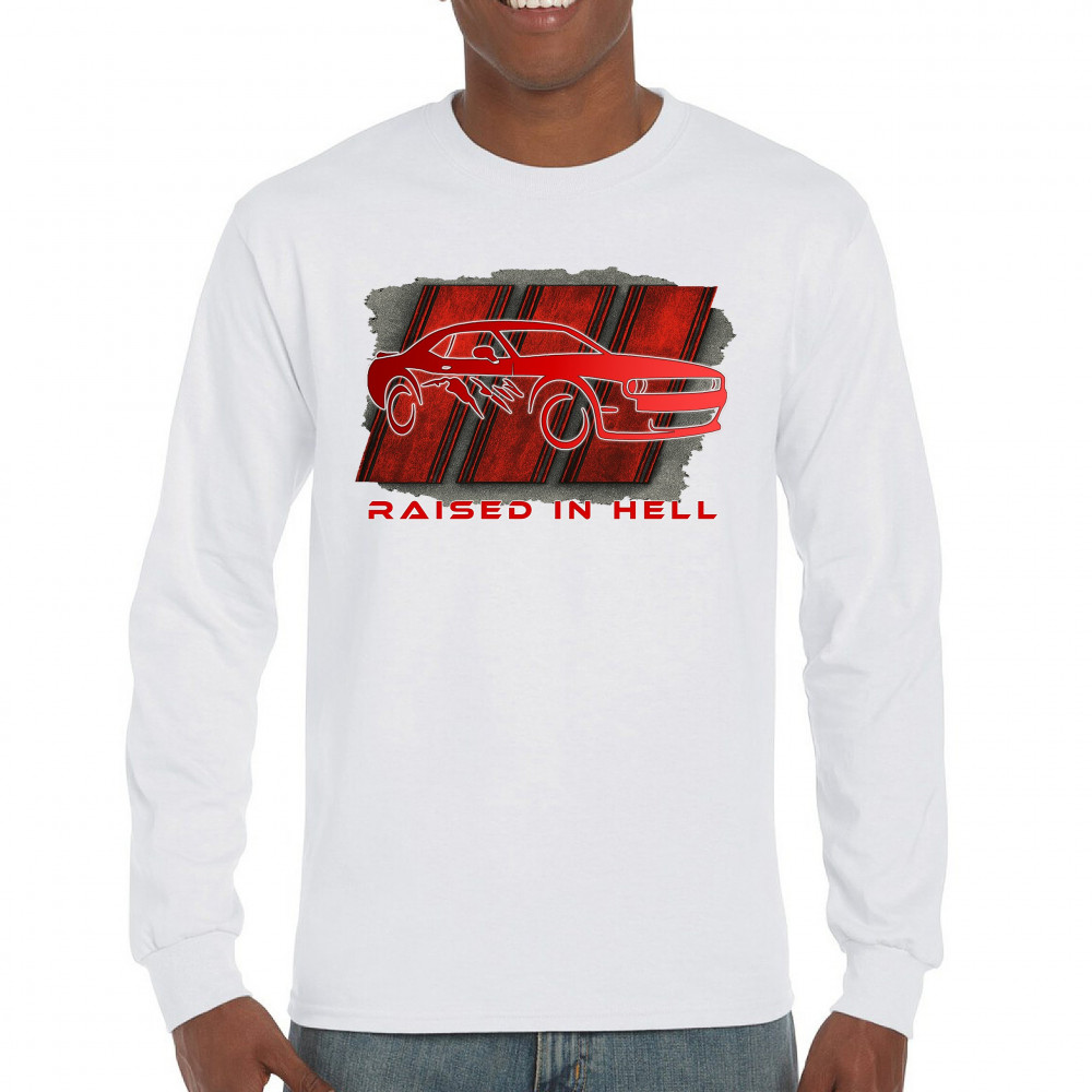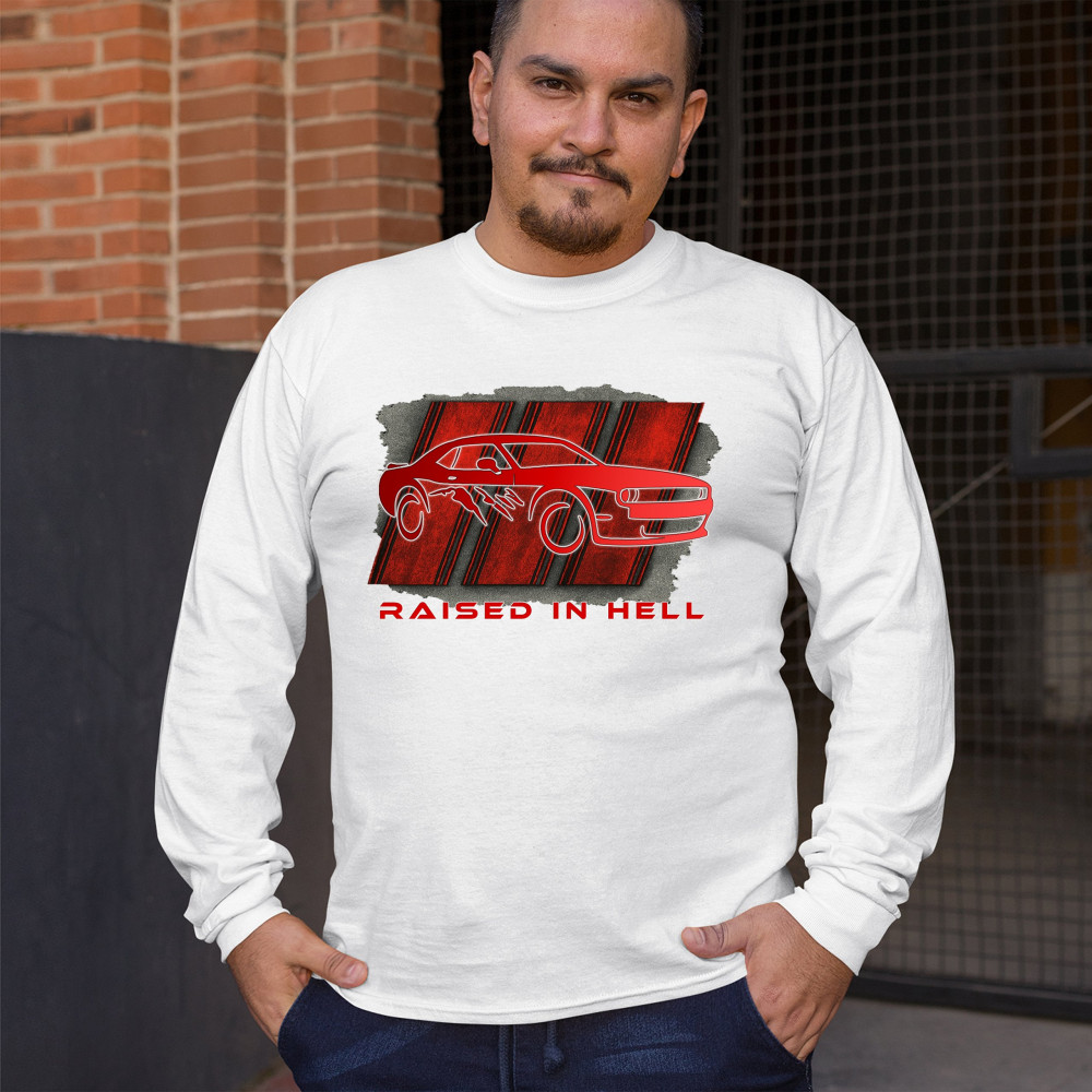 Bring heat to the streets with this Raised in Hell design. Featuring a blazing red muscle car and aggressive claw marks, it's perfect for Scat Pack lovers, burnout warriors, and throttle addicts. Whether you're tearing down the strip or parked at the meet, this design delivers pure muscle attitude and street-born fire.
