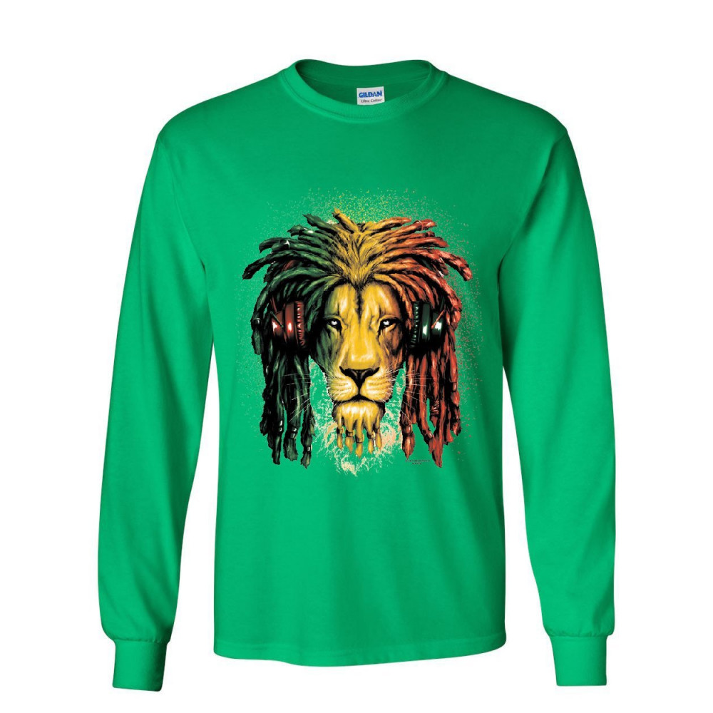 RASTA LION WITH HEADPHONES 420 rasta lion with headphones long sleeve t-shirt calavera green