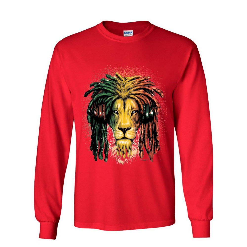 RASTA LION WITH HEADPHONES 420 rasta lion with headphones long sleeve t-shirt calavera red