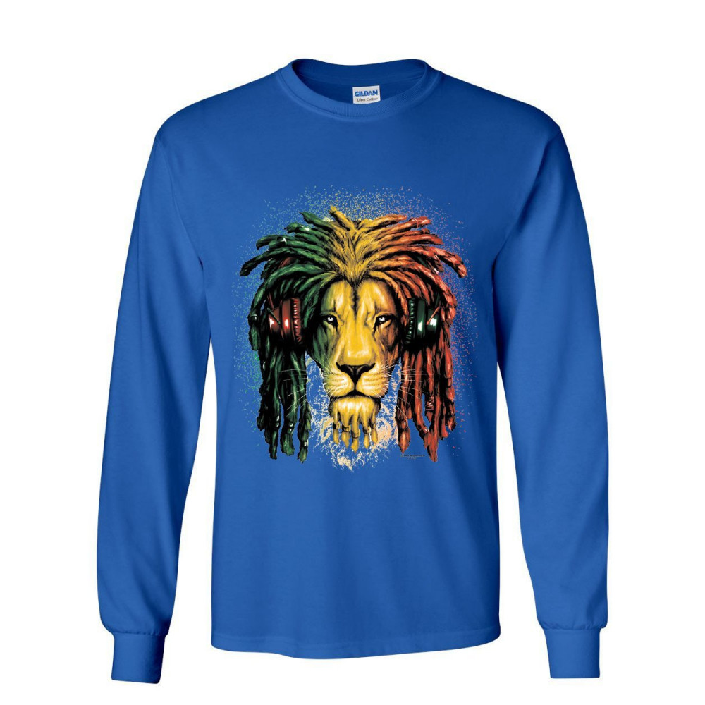 RASTA LION WITH HEADPHONES 420 rasta lion with headphones long sleeve t-shirt calavera royal blue