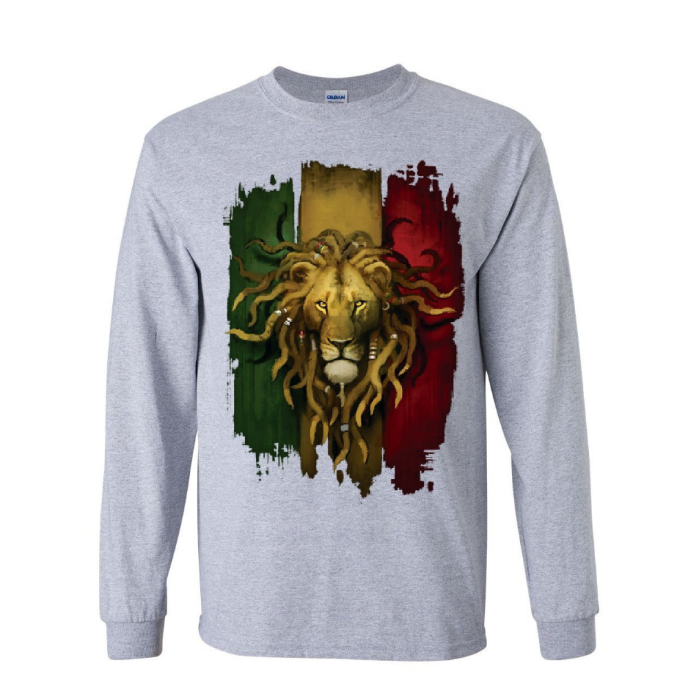RASTA LION long sleeve t-shirt jah jamaica reggae marijuana 420 weed zion tee gray