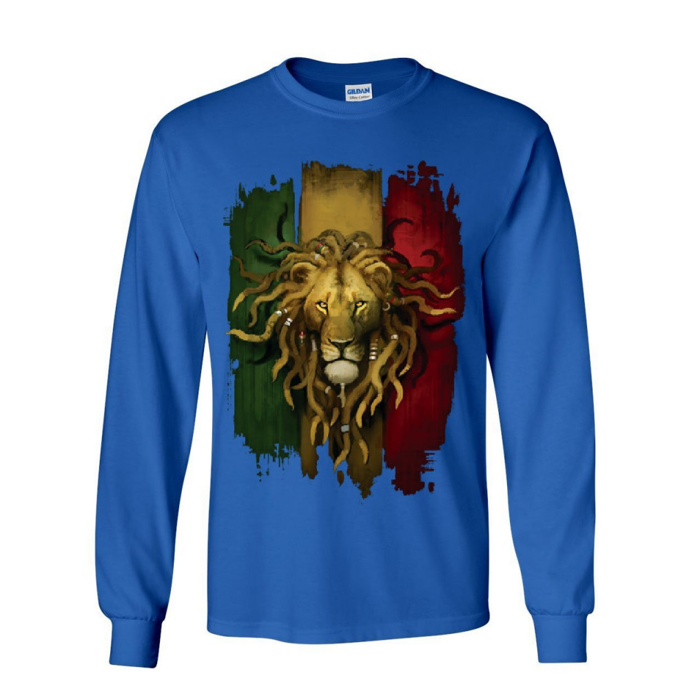RASTA LION long sleeve t-shirt jah jamaica reggae marijuana 420 weed zion tee royal blue