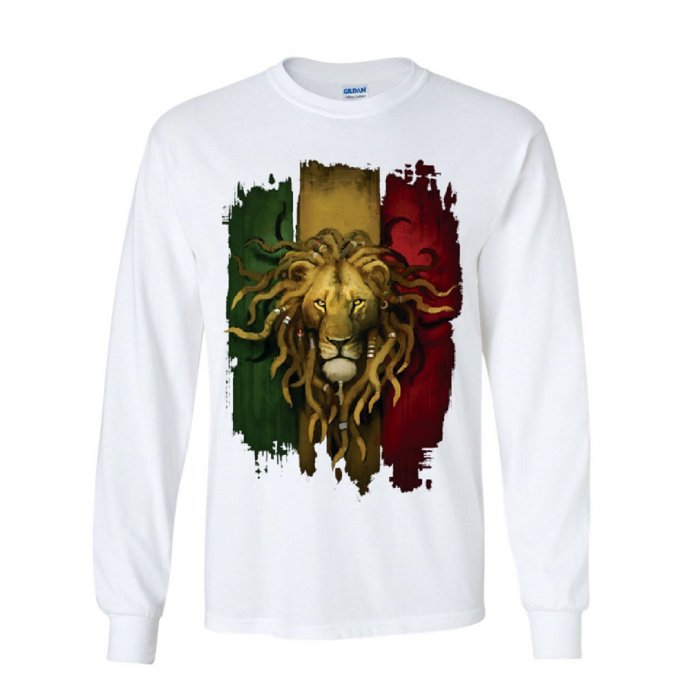RASTA LION long sleeve t-shirt jah jamaica reggae marijuana 420 weed zion tee white