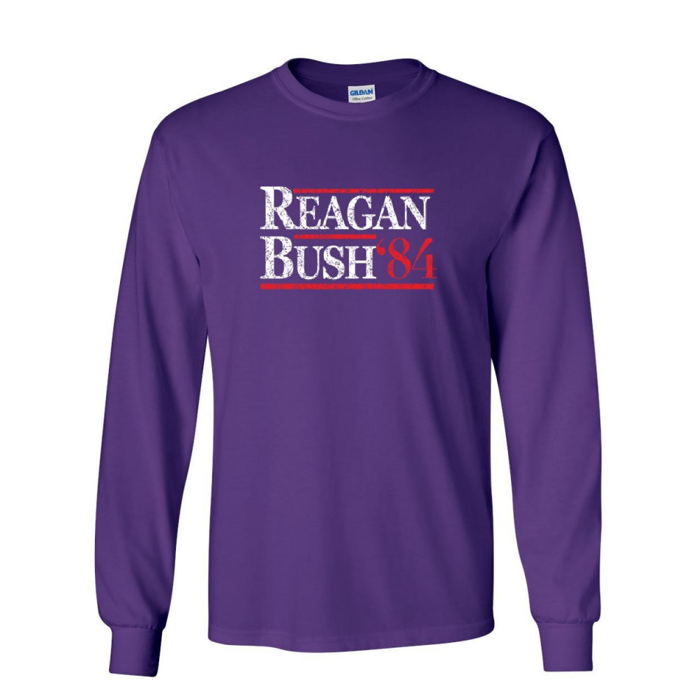 REAGAN BUSH '84 long sleeve t-shirt ronald american president history gop tee purple