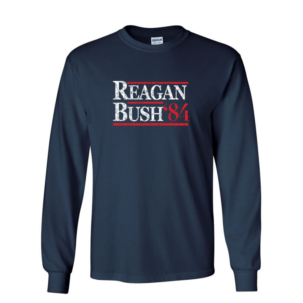 REAGAN BUSH '84 long sleeve t-shirt ronald american president history gop tee navy blue