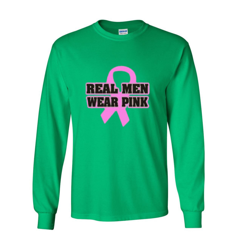 REAL MEN WEAR PINK long sleeve t-shirt breast cancer awareness green