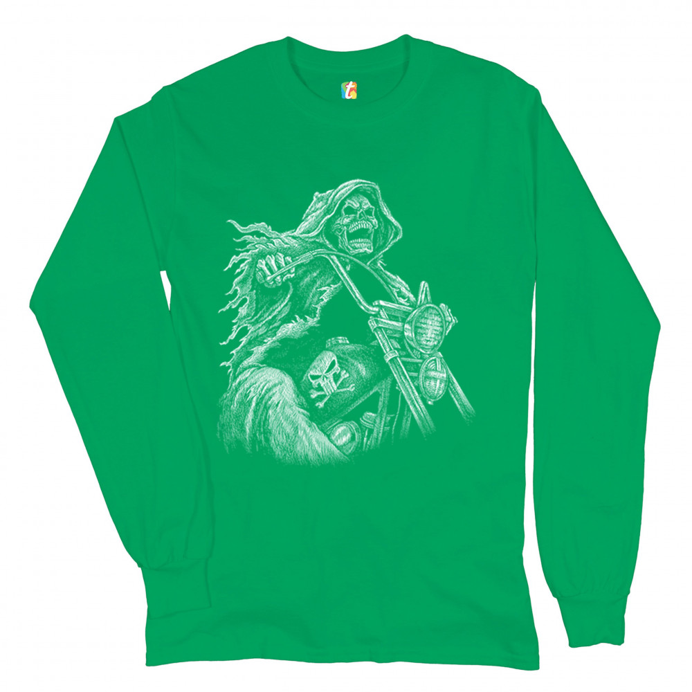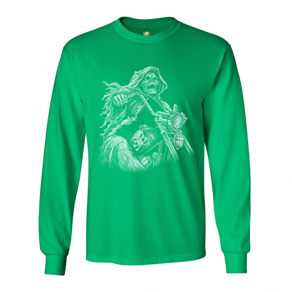 REAPER BIKER long sleeve t-shirt ride or die skeleton biker forever motorcycle green