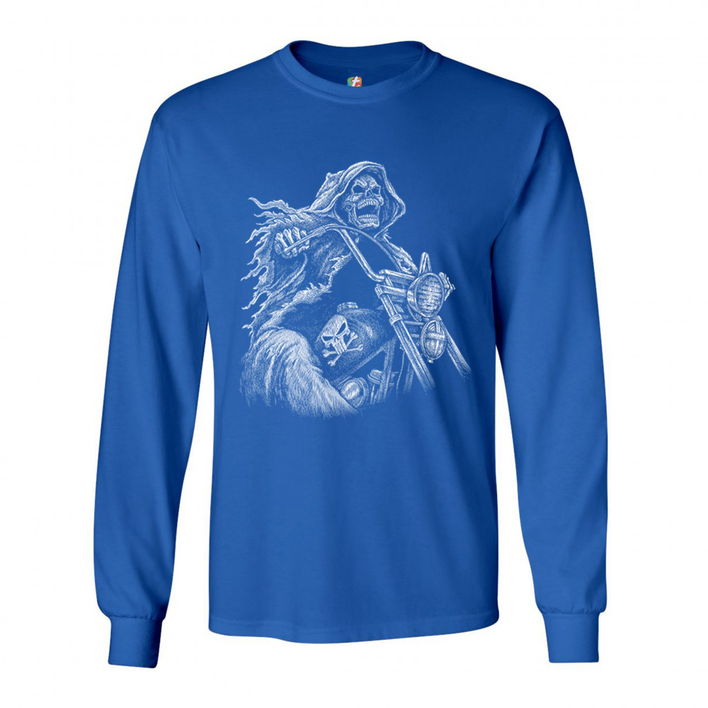 REAPER BIKER long sleeve t-shirt ride or die skeleton biker forever motorcycle royal blue