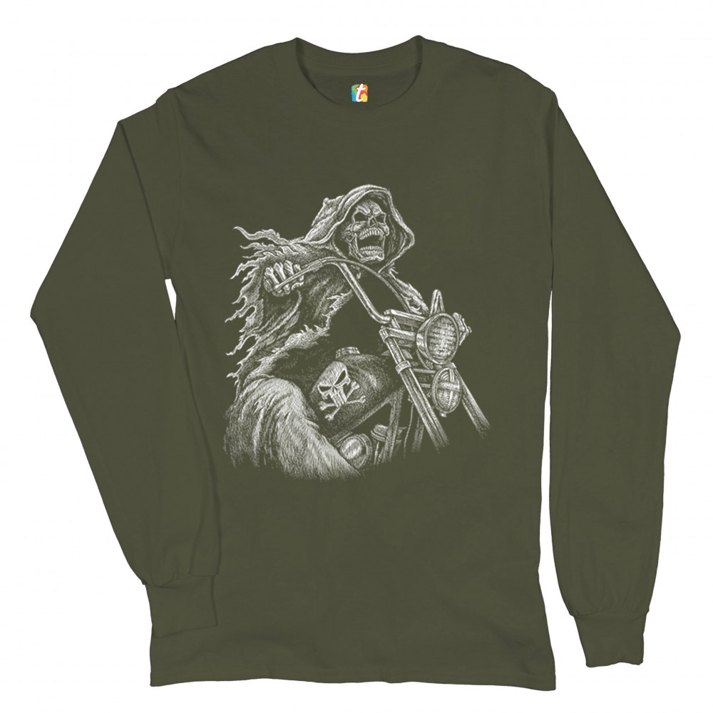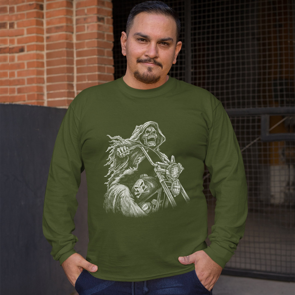 REAPER BIKER long sleeve t-shirt ride or die skeleton biker forever motorcycle military green