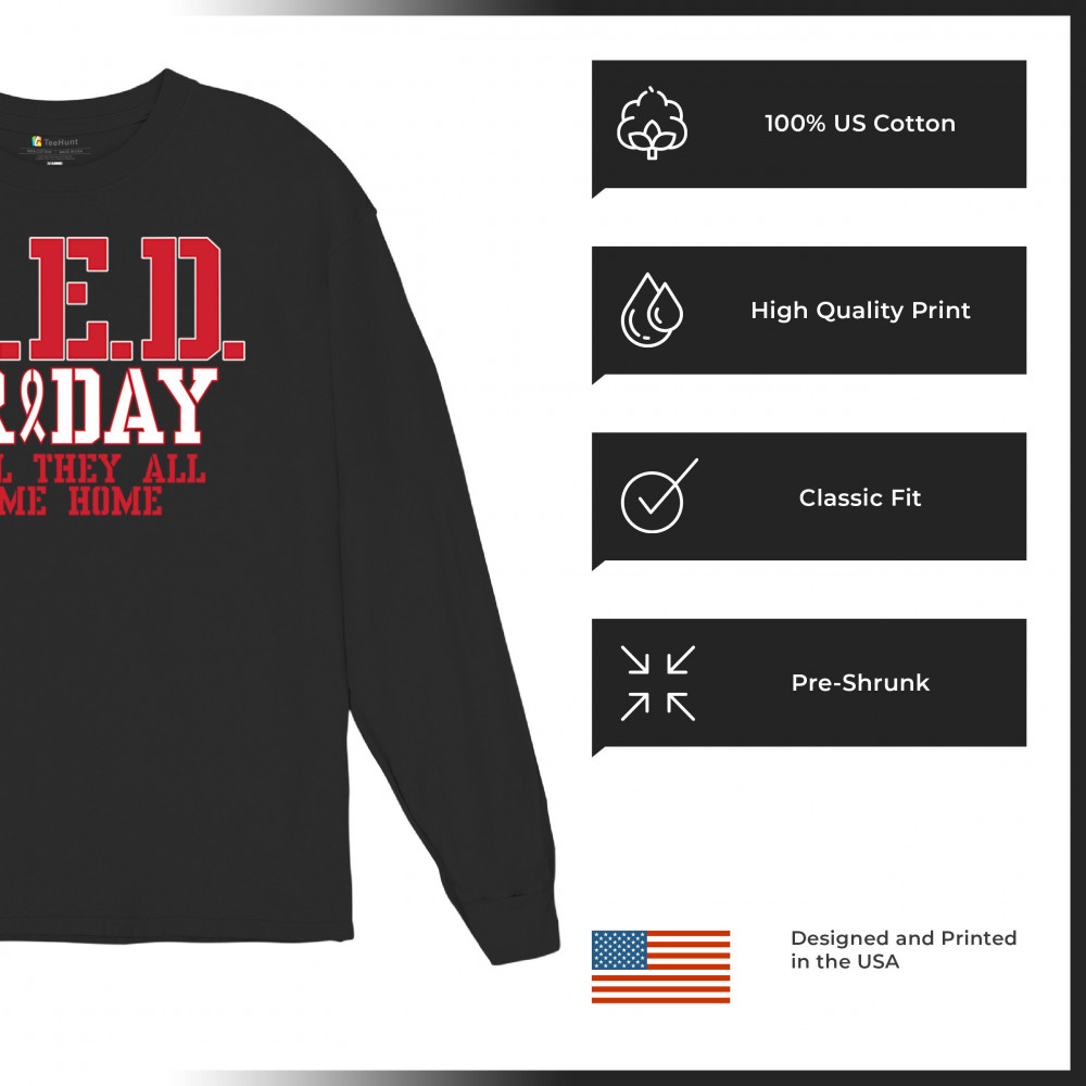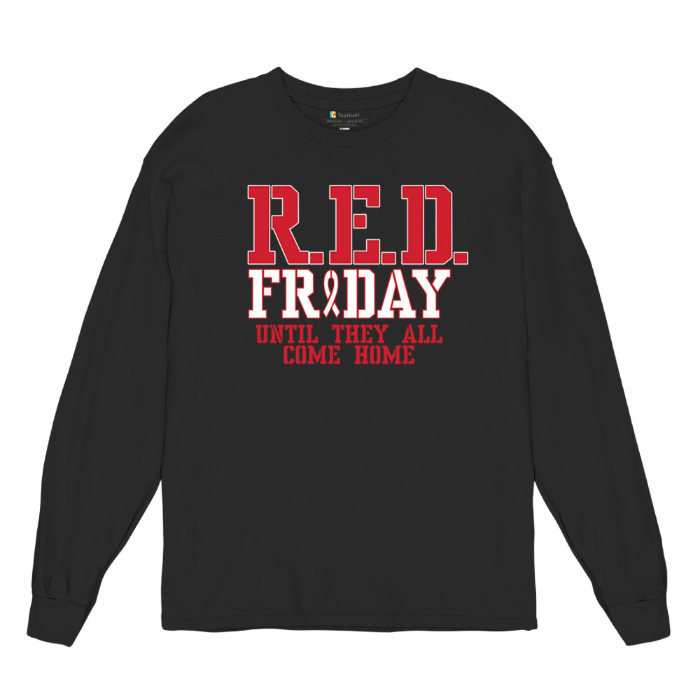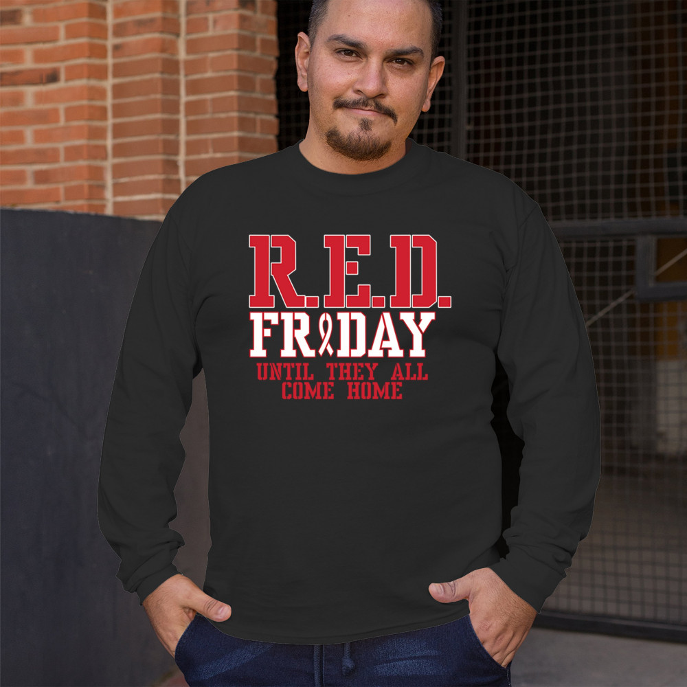 Demonstrate your support for our brave troops with this R.E.D. Friday shirt. Featuring a striking design and the heartfelt message "Until They All Come Home," this shirt is ideal for showing your patriotism and respect for those deployed. Made from premium, soft fabric, it offers lasting comfort and durability. Wear it on Veterans Day, Memorial Day, and the Fourth of July, or anytime you want to honor our military. This shirt is also a wonderful gift for anyone who stands with our troops and believes in remembering everyone deployed.