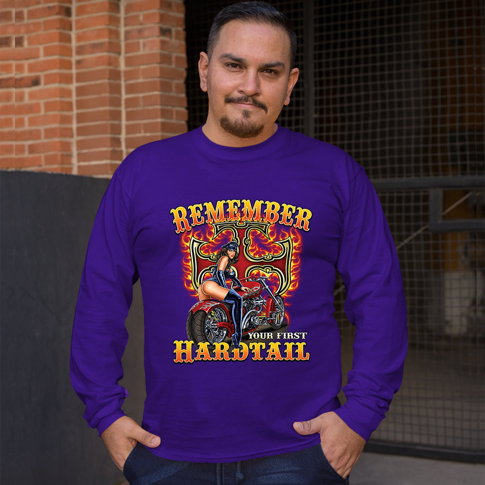 REMEMBER YOUR FIRST HARDTAIL long sleeve t-shirt biker babe motorcycle chopper purple