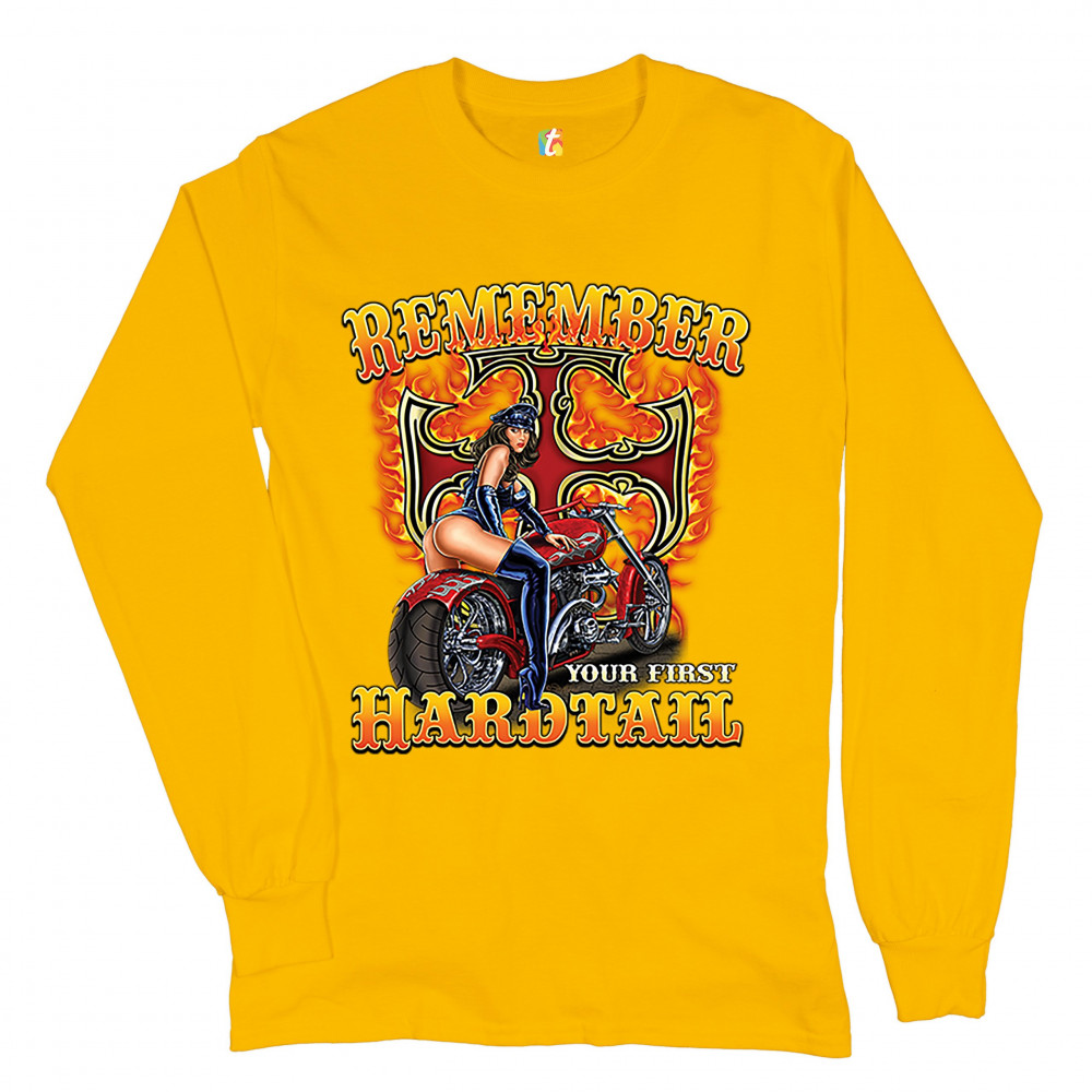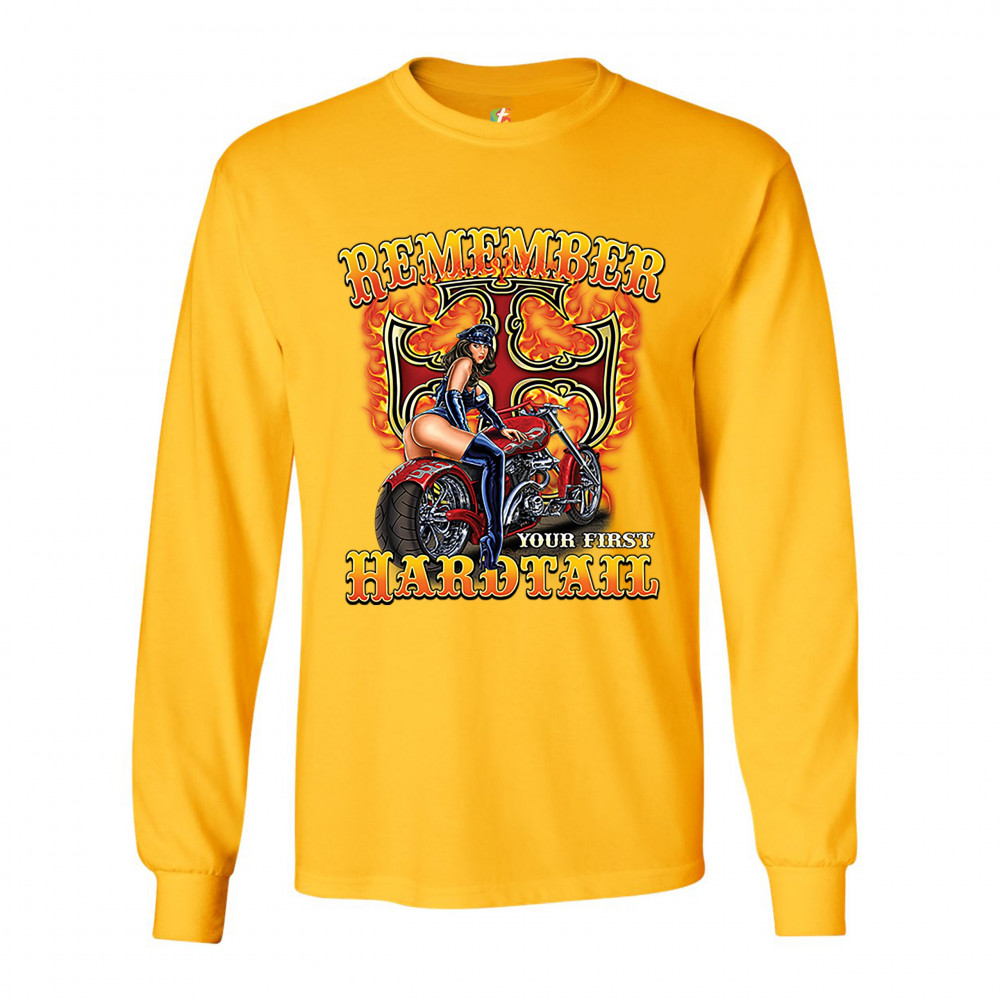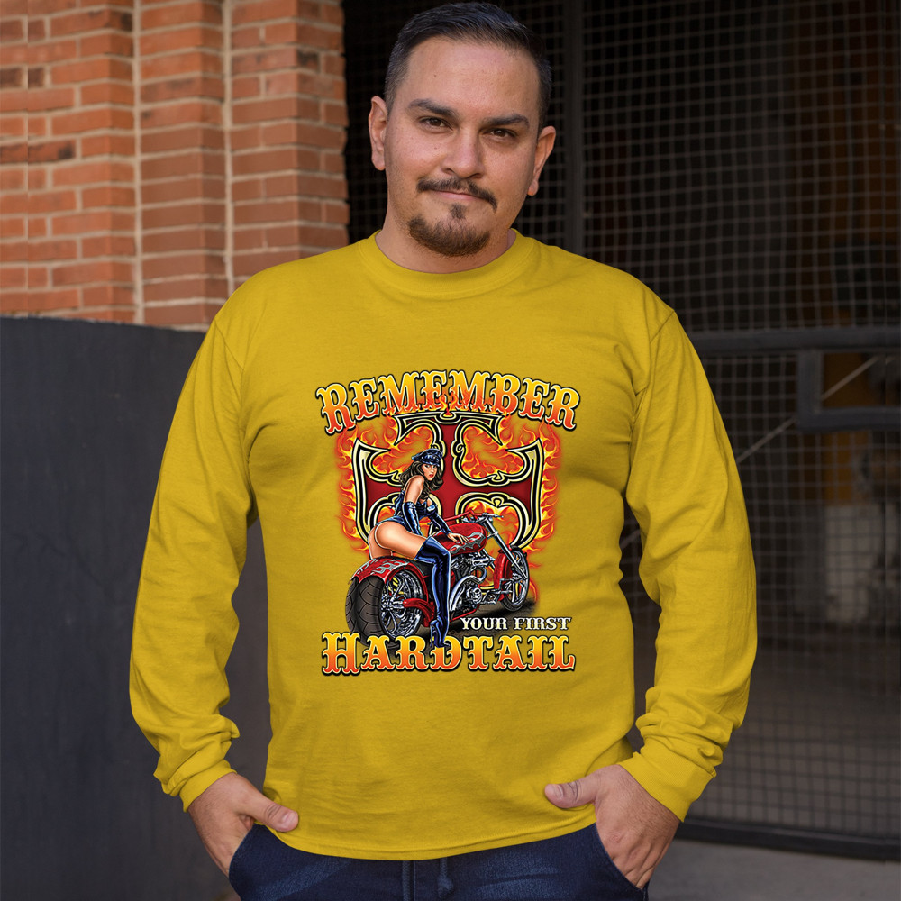 REMEMBER YOUR FIRST HARDTAIL long sleeve t-shirt biker babe motorcycle chopper yellow