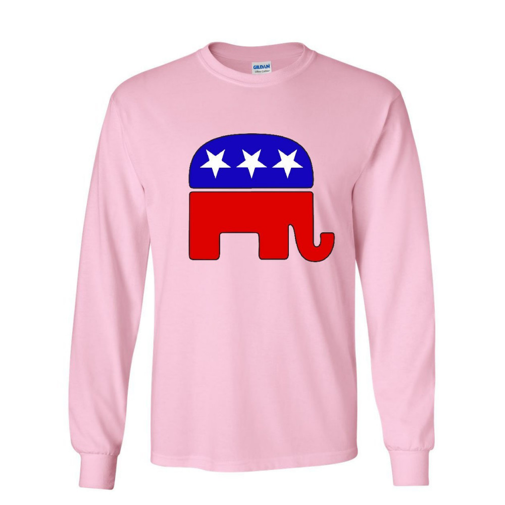 REPUBLICAN PARTY ELEPHANT logo long sleeve t-shirt political conservative tee light pink