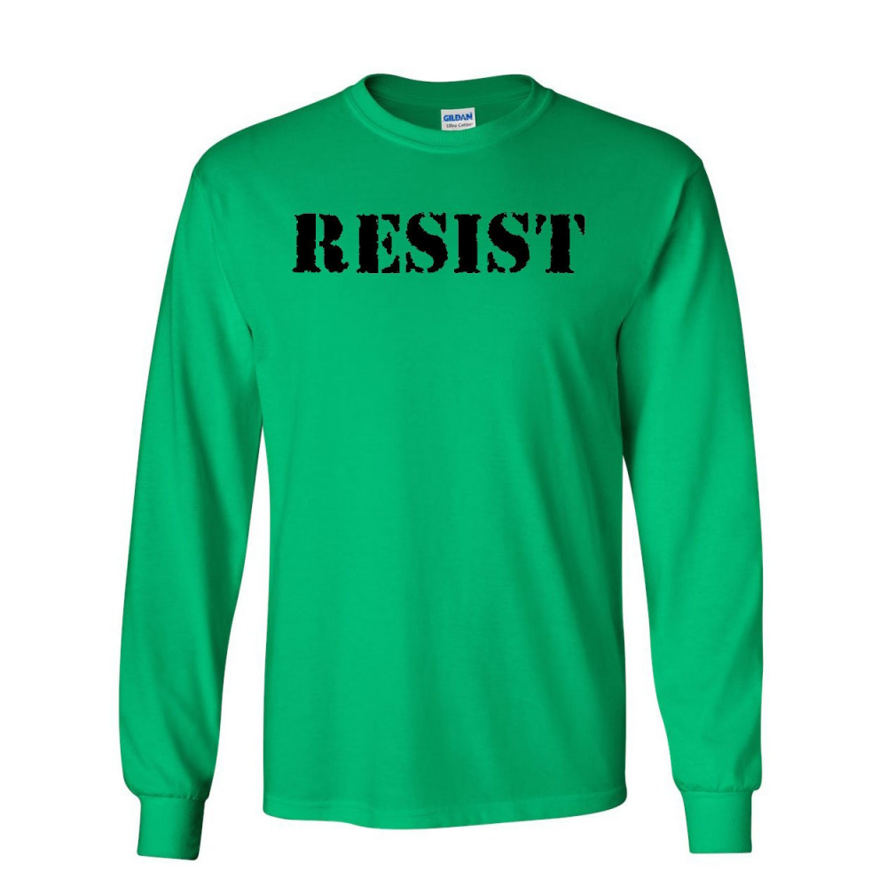 RESIST TRUMP resist long sleeve t-shirt political anti-trump protest rebel impeach fight tee green