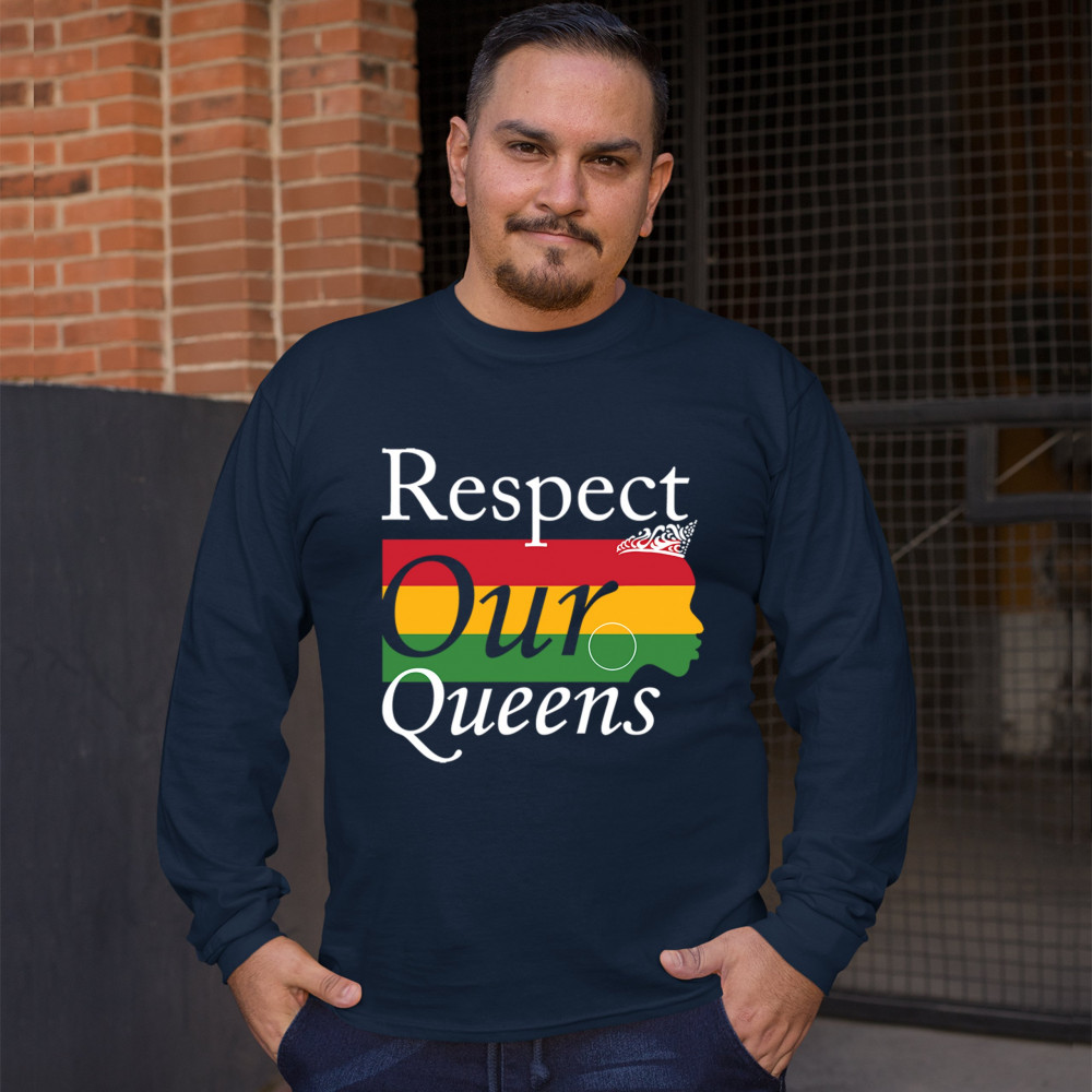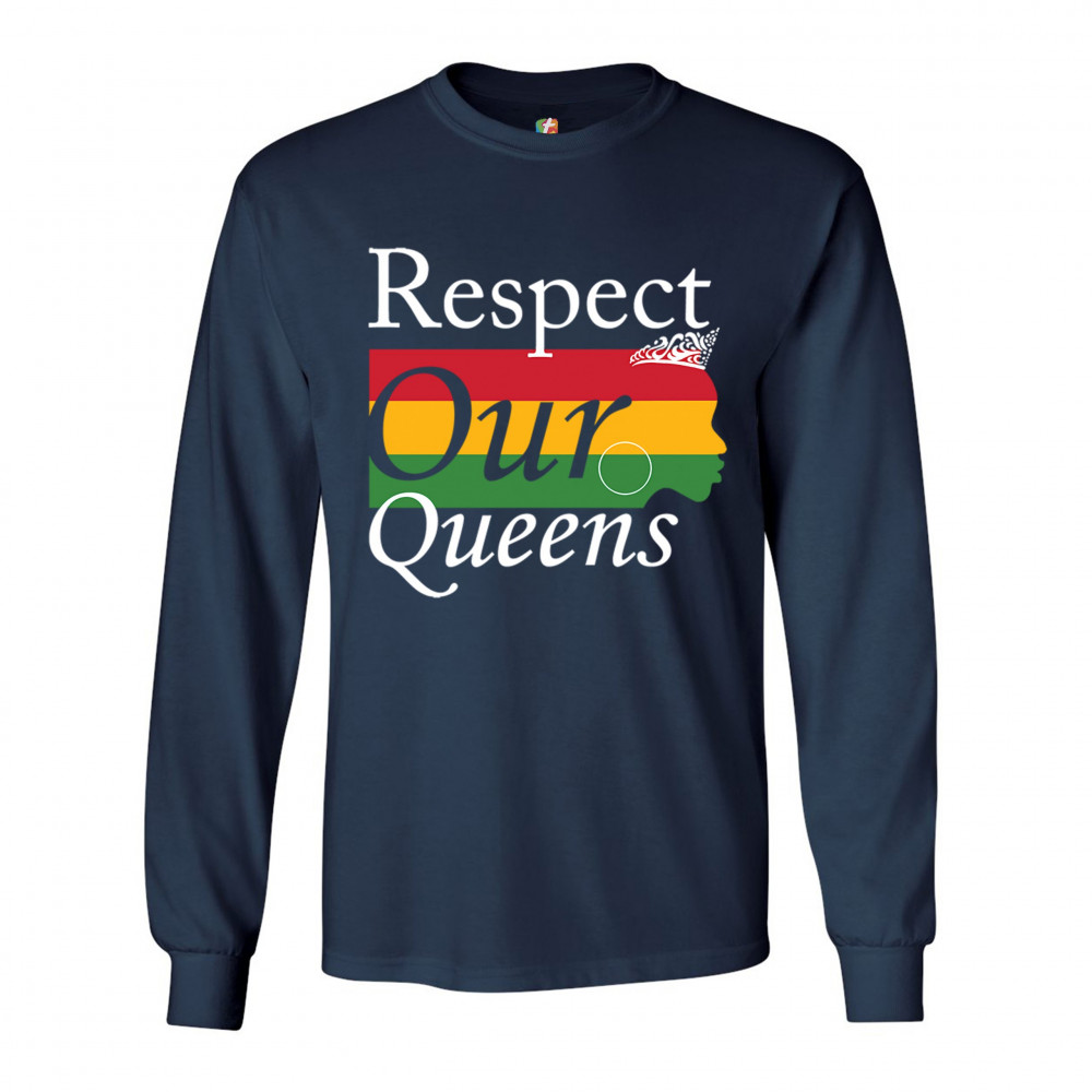 RESPECT OUR QUEENS long sleeve t-shirt black girl magic african american women navy blue