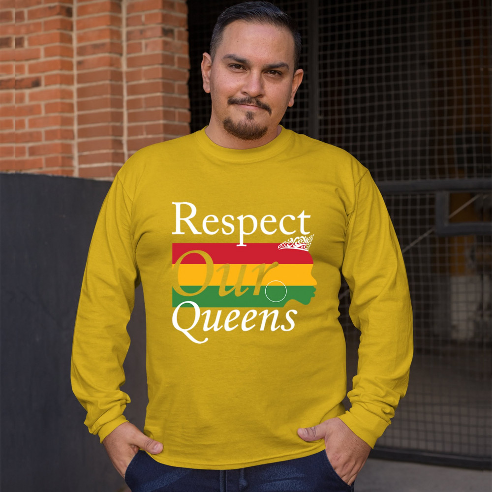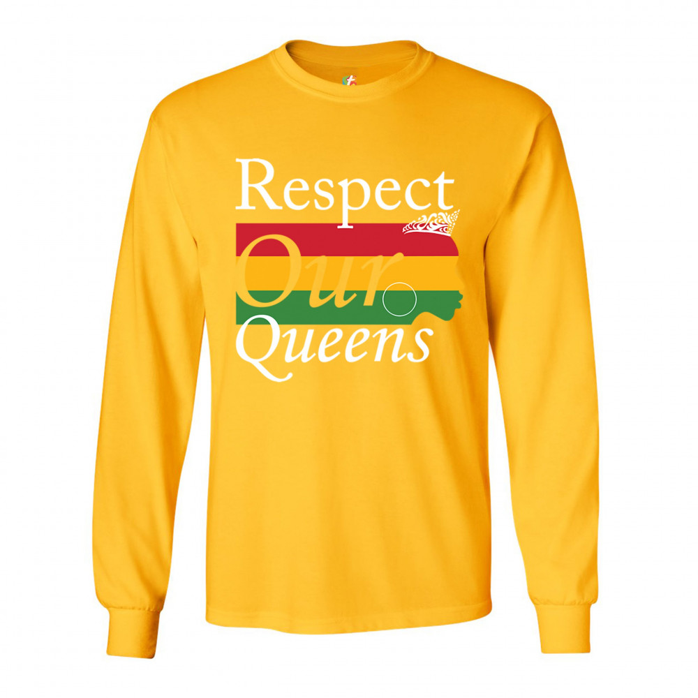 RESPECT OUR QUEENS long sleeve t-shirt black girl magic african american women yellow