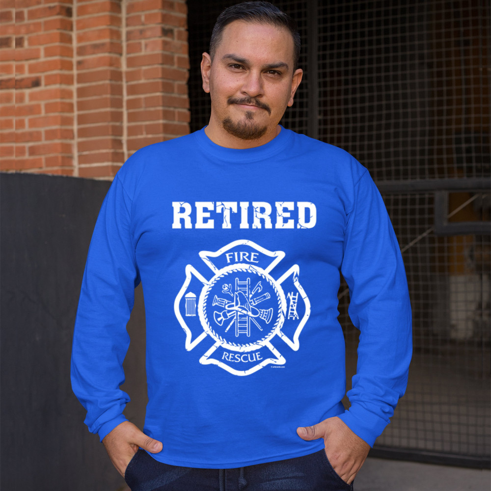 RETIRED FIREFIGHTER BADGE long sleeve t-shirt fire and rescue fire department royal blue