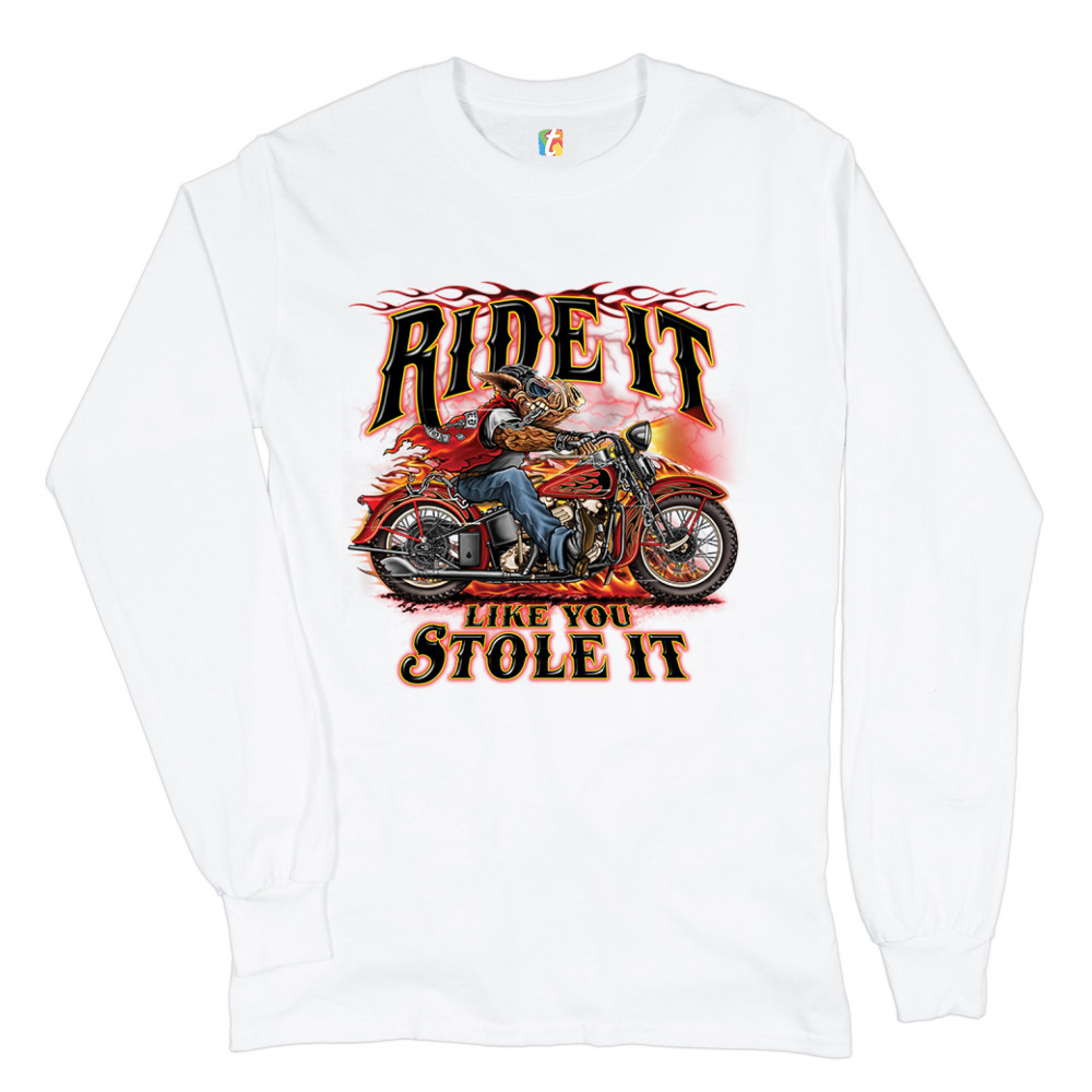RIDE IT LIKE YOU STOLE IT long sleeve t-shirt biker born to be wild motorcycle white