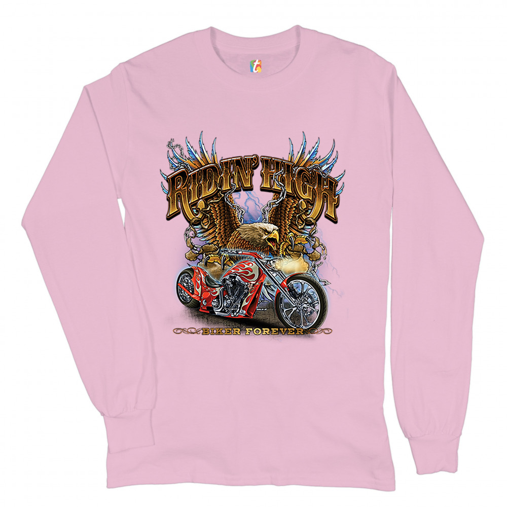 RIDIN' HIGH long sleeve t-shirt biker forever chopper rider american eagle pink