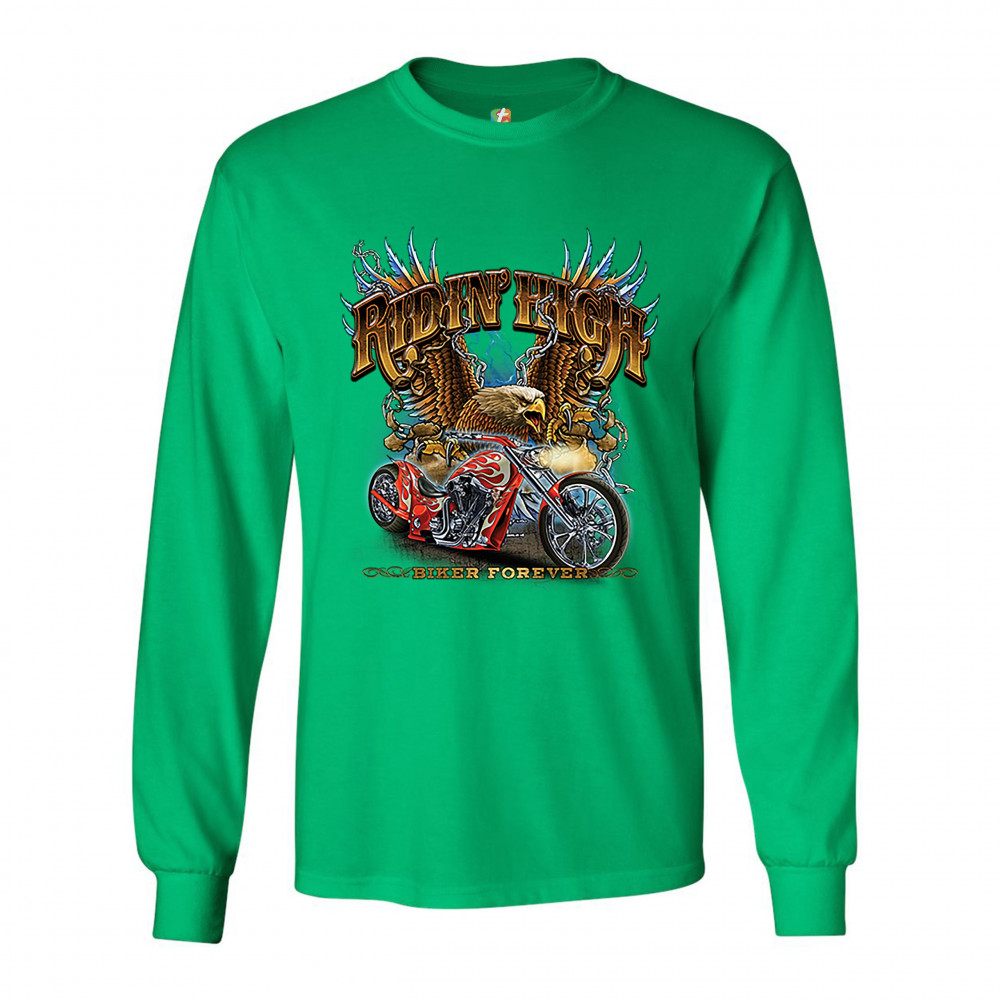 RIDIN' HIGH long sleeve t-shirt biker forever chopper rider american eagle green