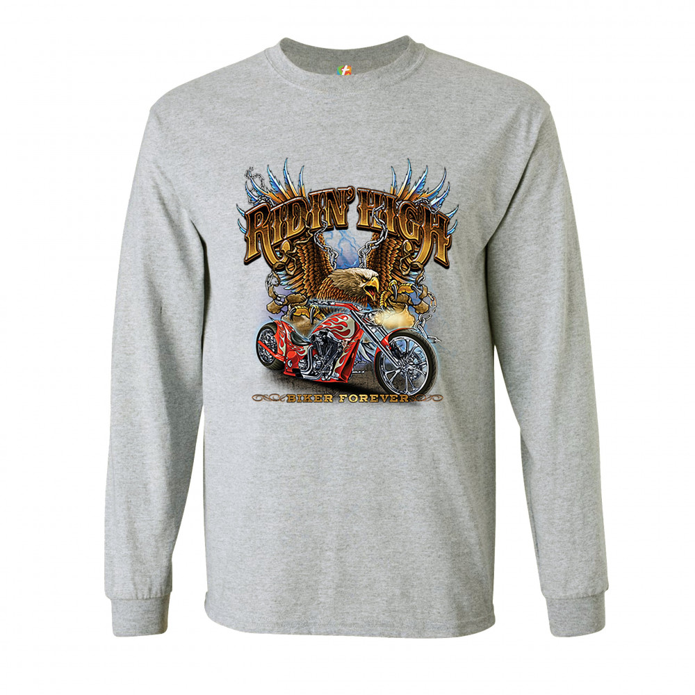 RIDIN' HIGH long sleeve t-shirt biker forever chopper rider american eagle gray