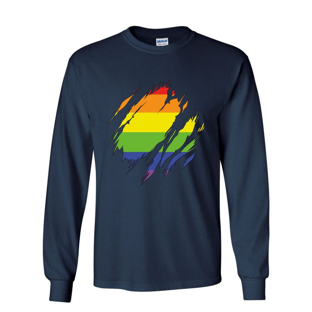 RIPPED GAY PRIDE RAINBOW FLAG long sleeve t-shirtlgbtq love wins navy blue