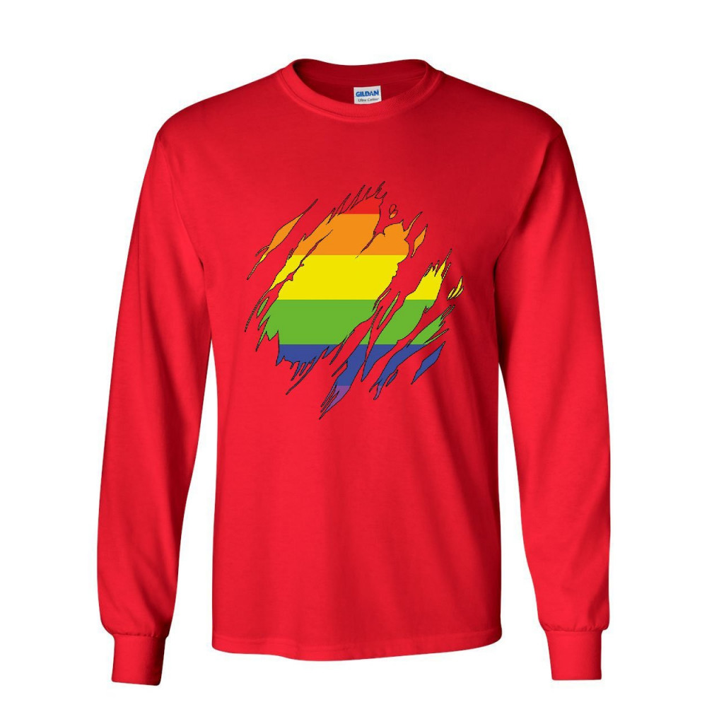 RIPPED GAY PRIDE RAINBOW FLAG long sleeve t-shirtlgbtq love wins red