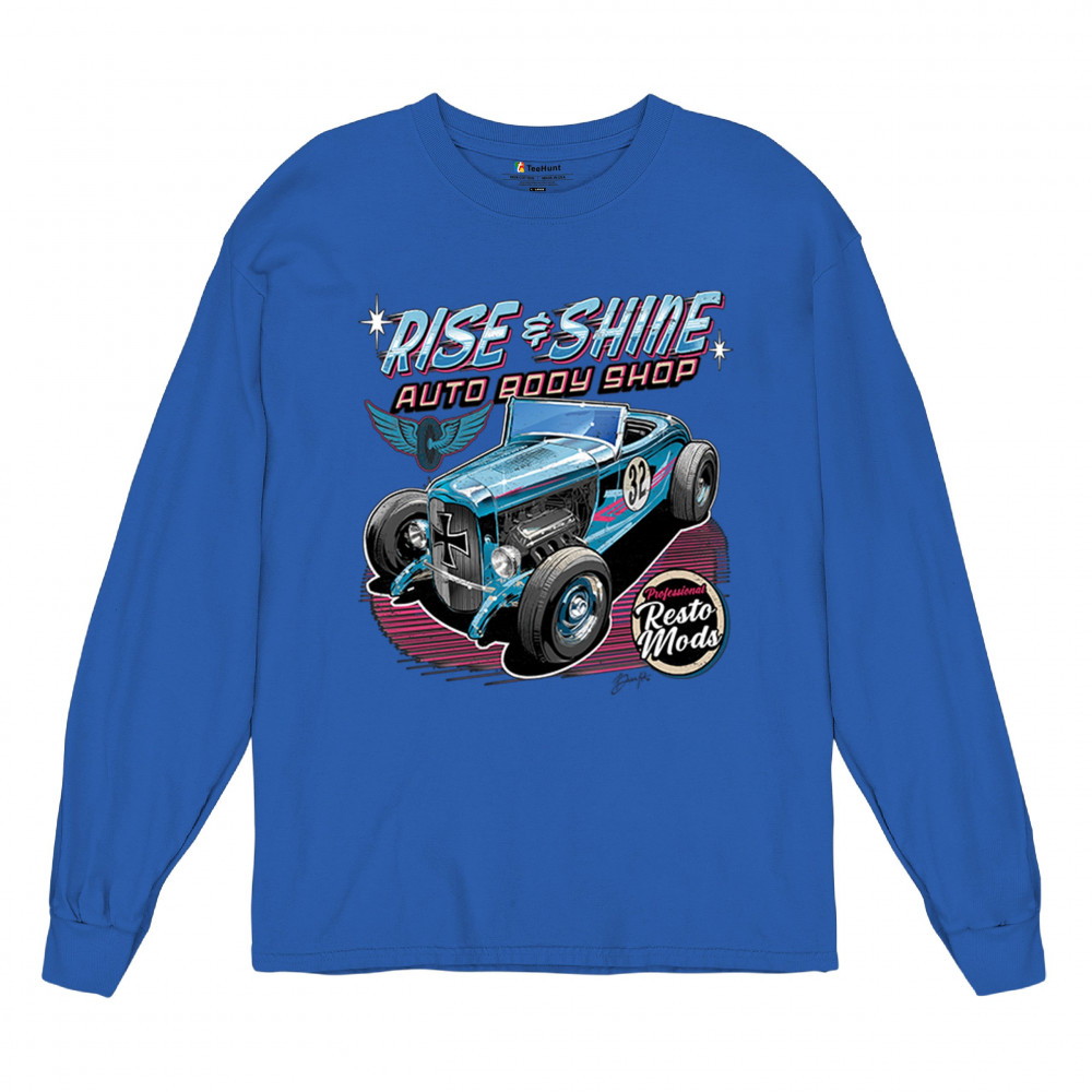 Celebrate vintage car culture with our "Rise & Shine Auto Body Shop" design. Perfect for car enthusiasts and auto restoration fans. Comfortable and durable.