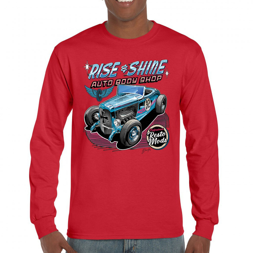 Our "Rise & Shine Auto Body Shop" design is a tribute to classic car culture and professional resto mods. This striking graphic showcases a vintage hot rod, perfect for car enthusiasts and auto restoration fans. Whether you're hitting the car show circuit or working in your garage, this design adds a touch of retro charm to your look. Crafted from premium materials, it offers both comfort and durability, ensuring it stands up to your active lifestyle. Celebrate the art of automotive restoration with this standout design.
