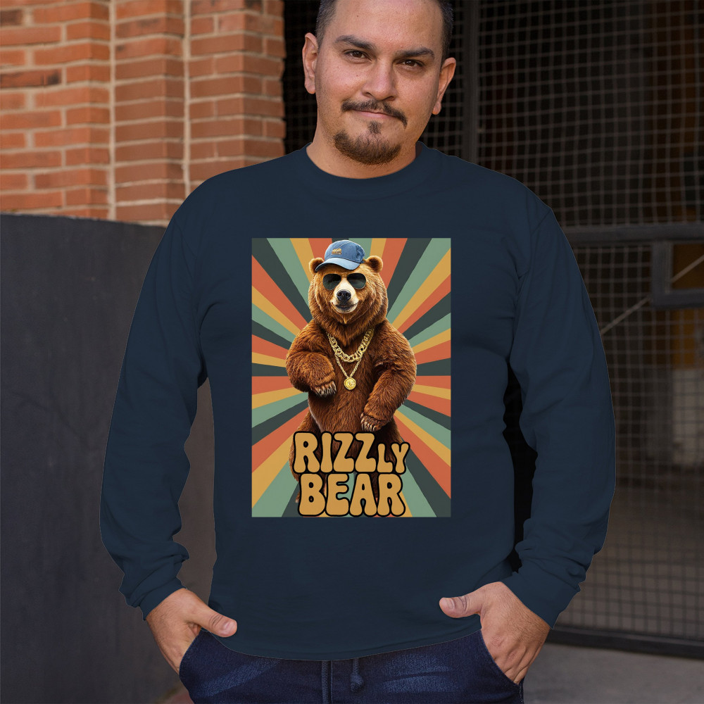 Here's to the bear that got the 'rizz.' With shades on and bling out, this bear is not just part of the scene; it is the scene. This design says 'I'm here to party', and the party doesn't start till the Rizzly Bear walks in.