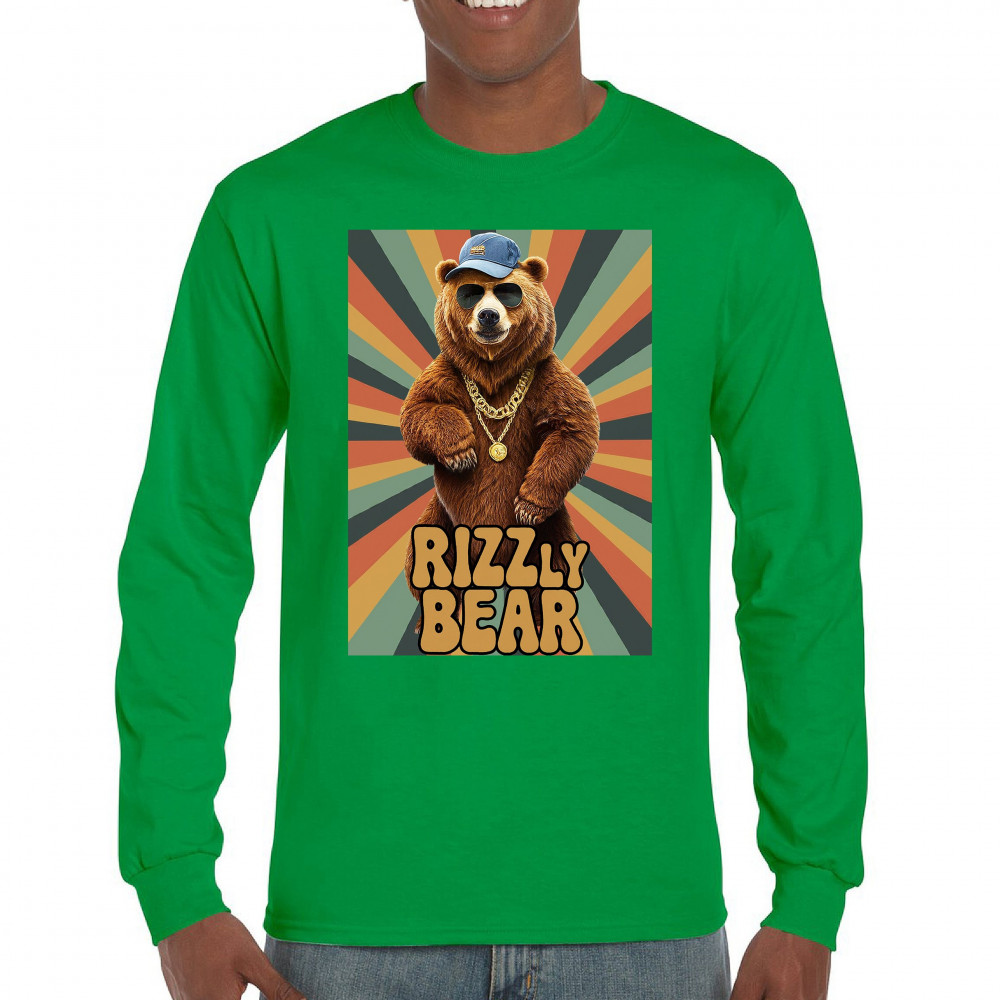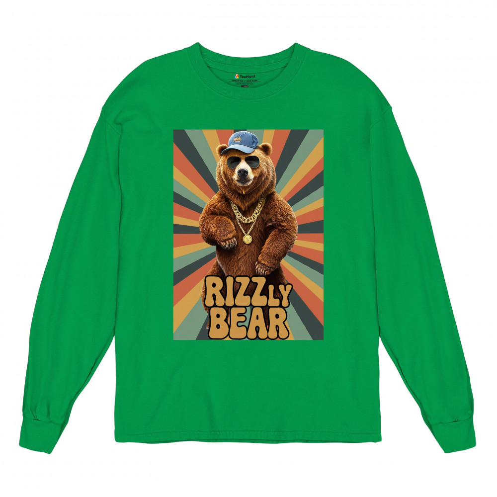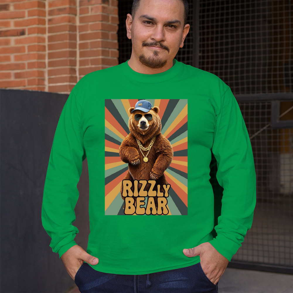 Here's to the bear that got the 'rizz.' With shades on and bling out, this bear is not just part of the scene; it is the scene. This design says 'I'm here to party', and the party doesn't start till the Rizzly Bear walks in.