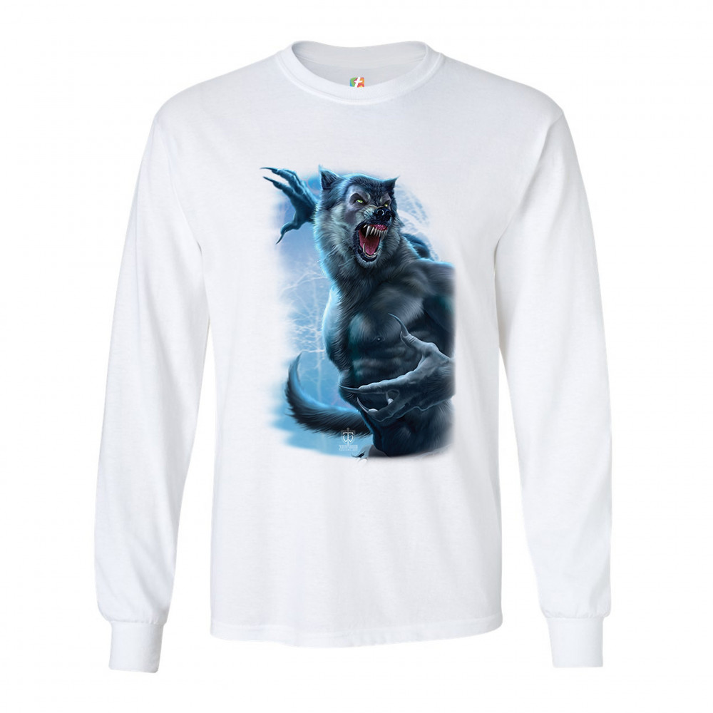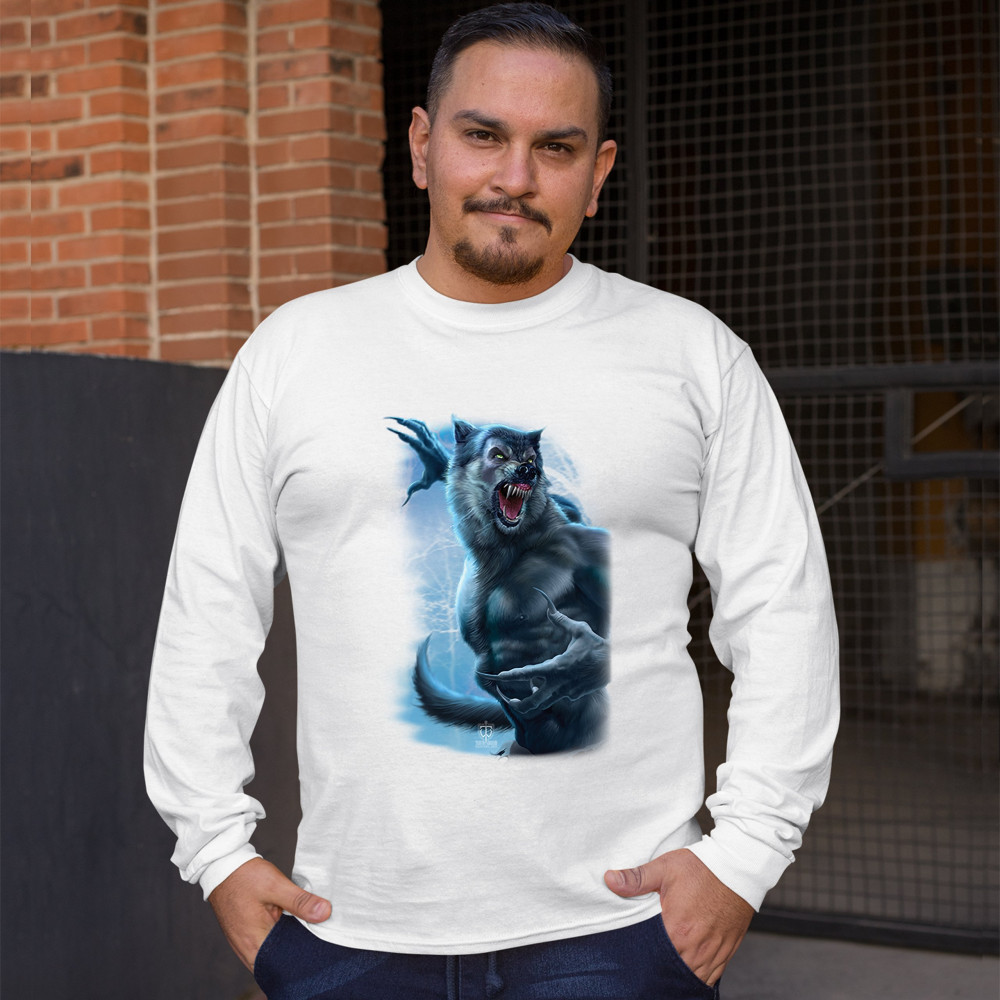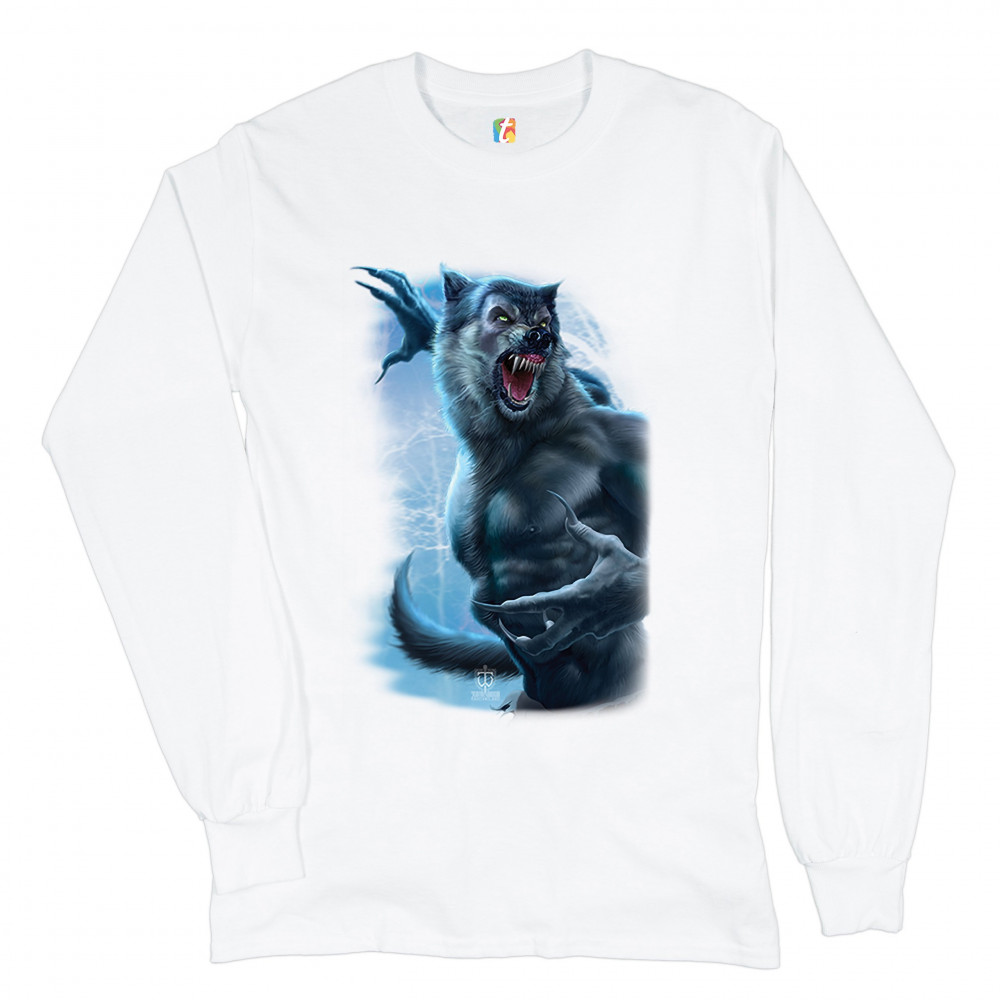 ROARING WEREWOLF long sleeve t-shirt halloween horror scary gothic monster white