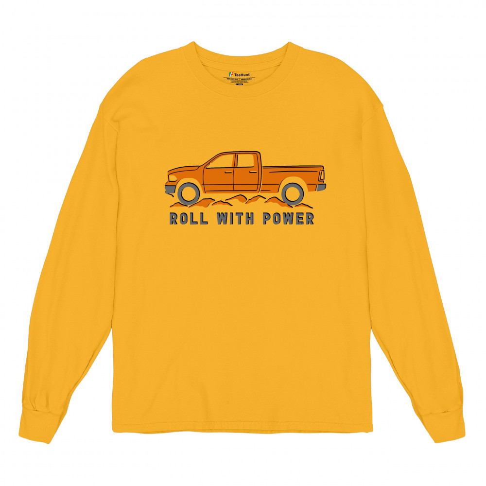 Pickup truck design for off-road fans and truck lovers. Show your road power and style with this bold “Roll With Power†truck graphic.