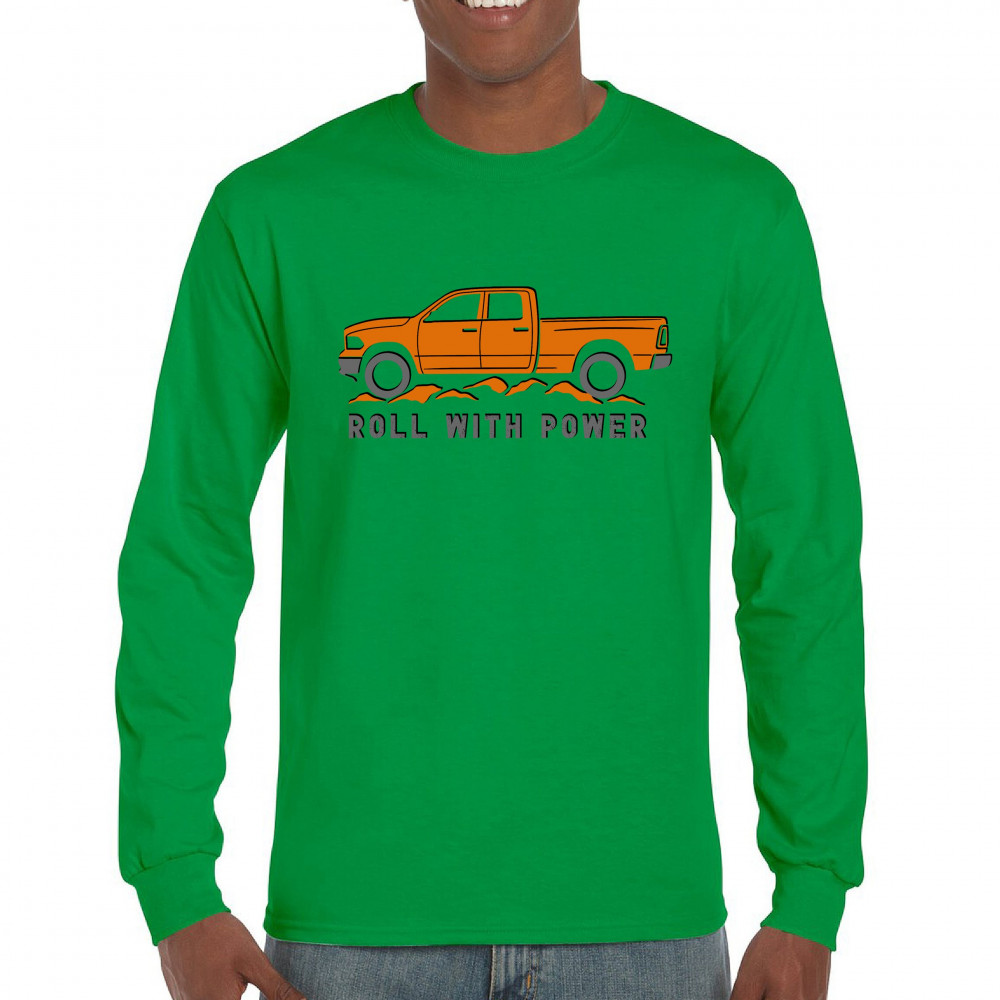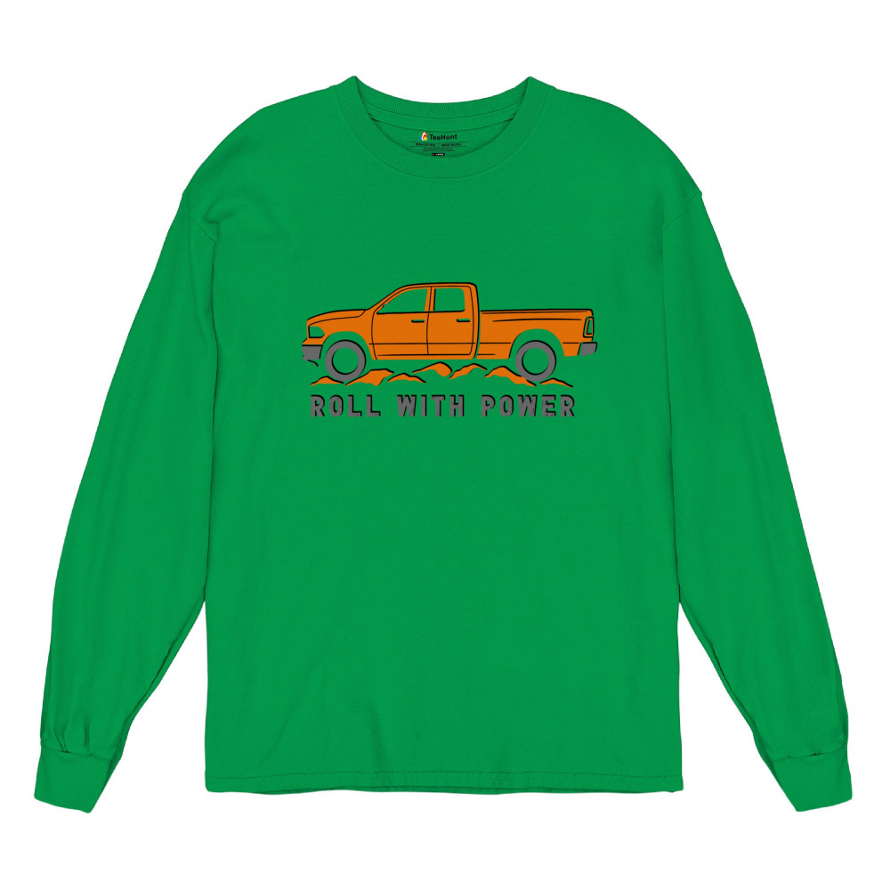 Pickup truck design for off-road fans and truck lovers. Show your road power and style with this bold “Roll With Power†truck graphic.