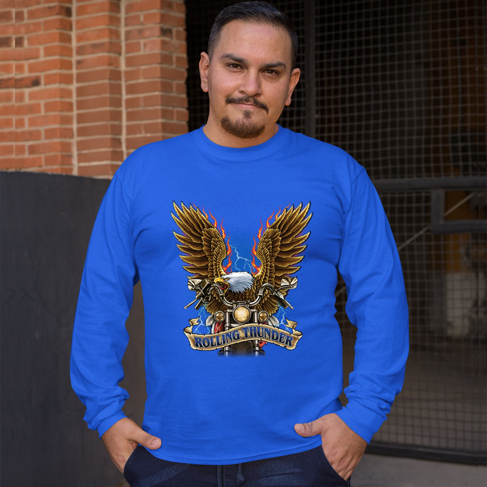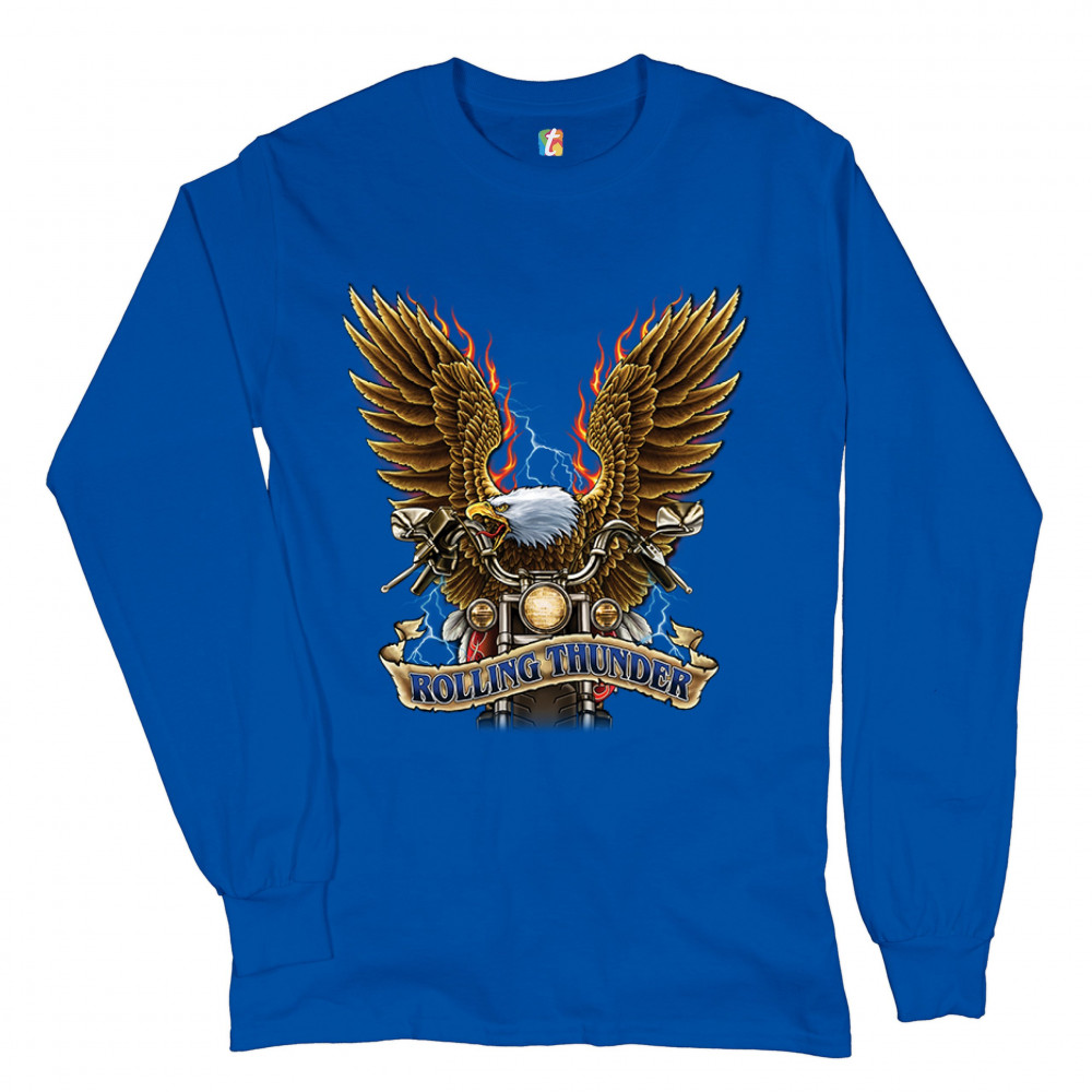 ROLLING THUNDER long sleeve t-shirt biker born to be wild bald eagle outlaw royal blue