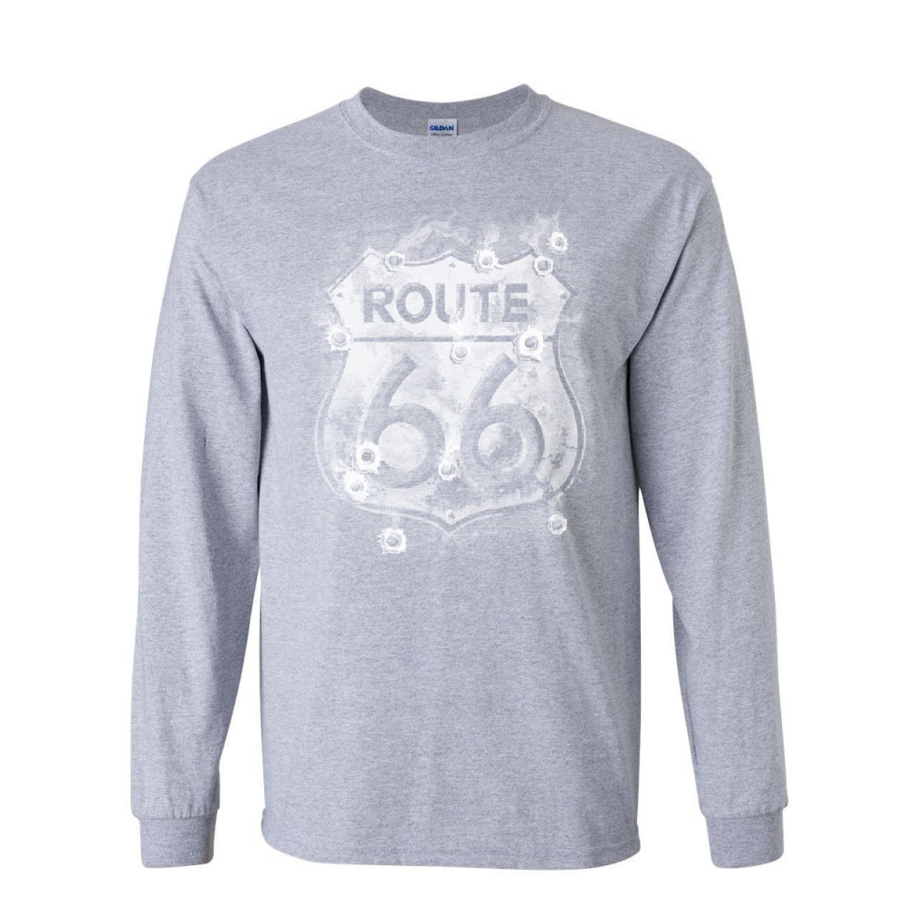 ROUTE 66 SIGN WITH BULLET HOLES route 66 long sleeve t-shirt bullet holes the mother road american highway tee gray