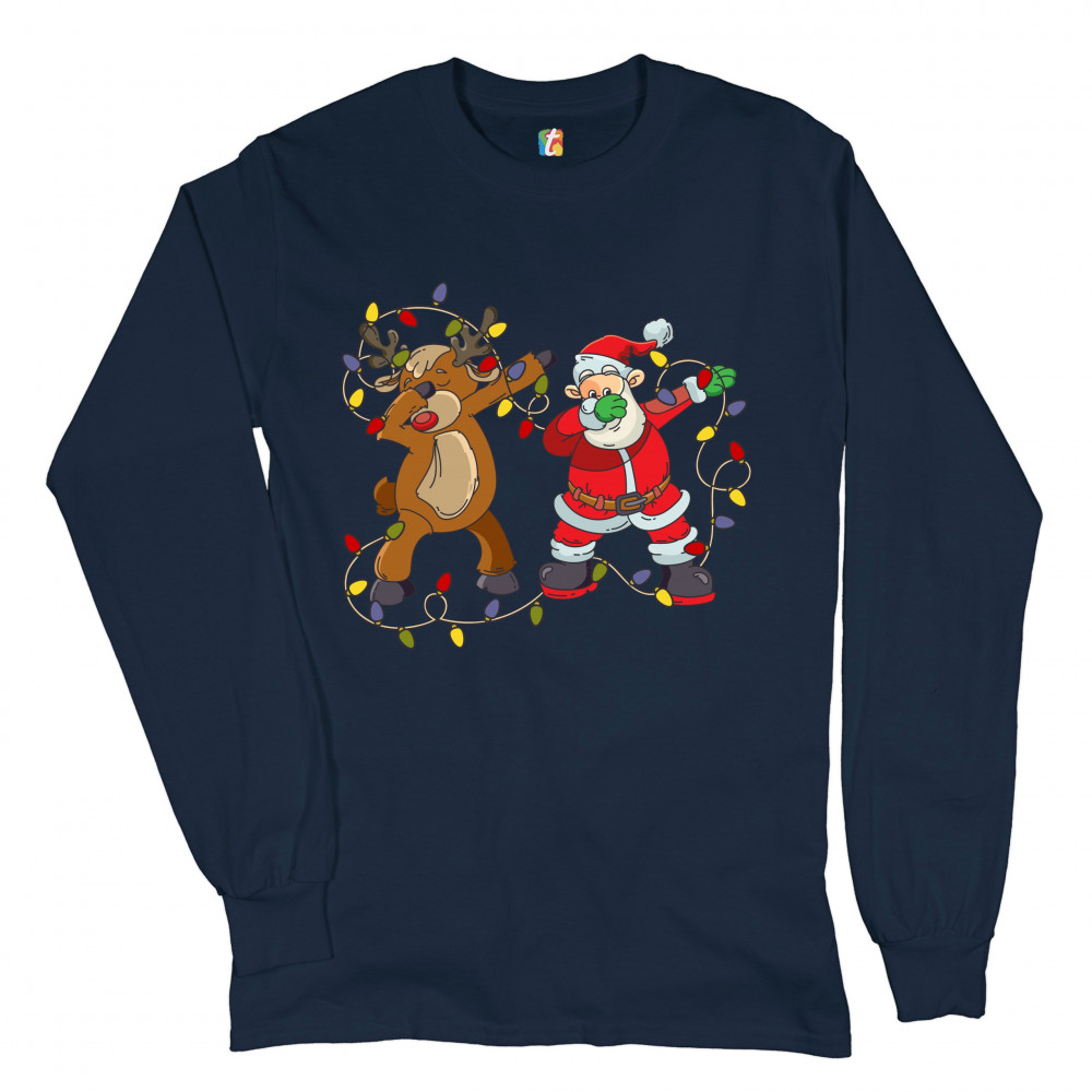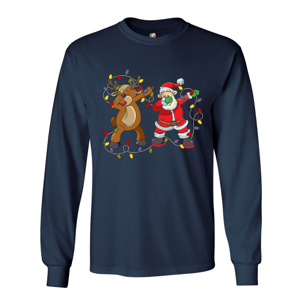 SANTA CLAUS AND RUDOLPH DAB DANCE long sleeve t-shirt merry christmas xmas navy blue