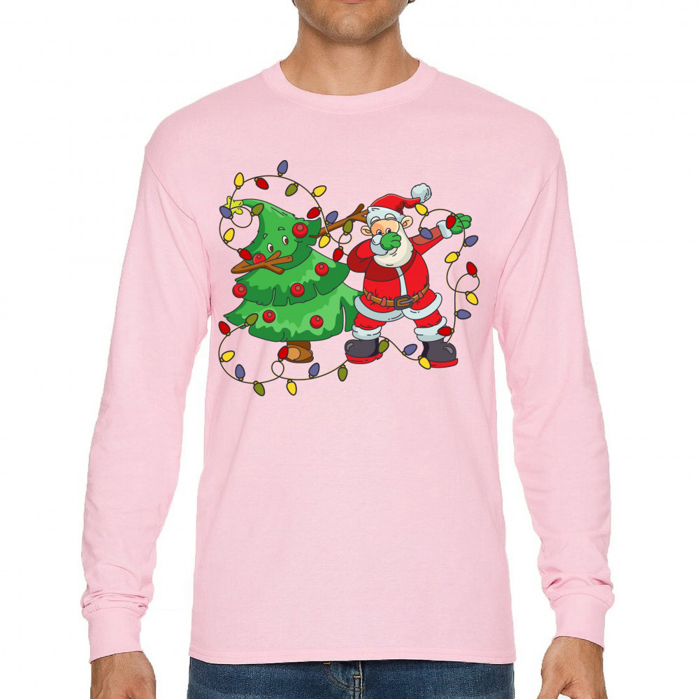 SANTA CLAUS DABBING WITH CHRISTMAS TREE long sleeve t-shirt merry and bright pink
