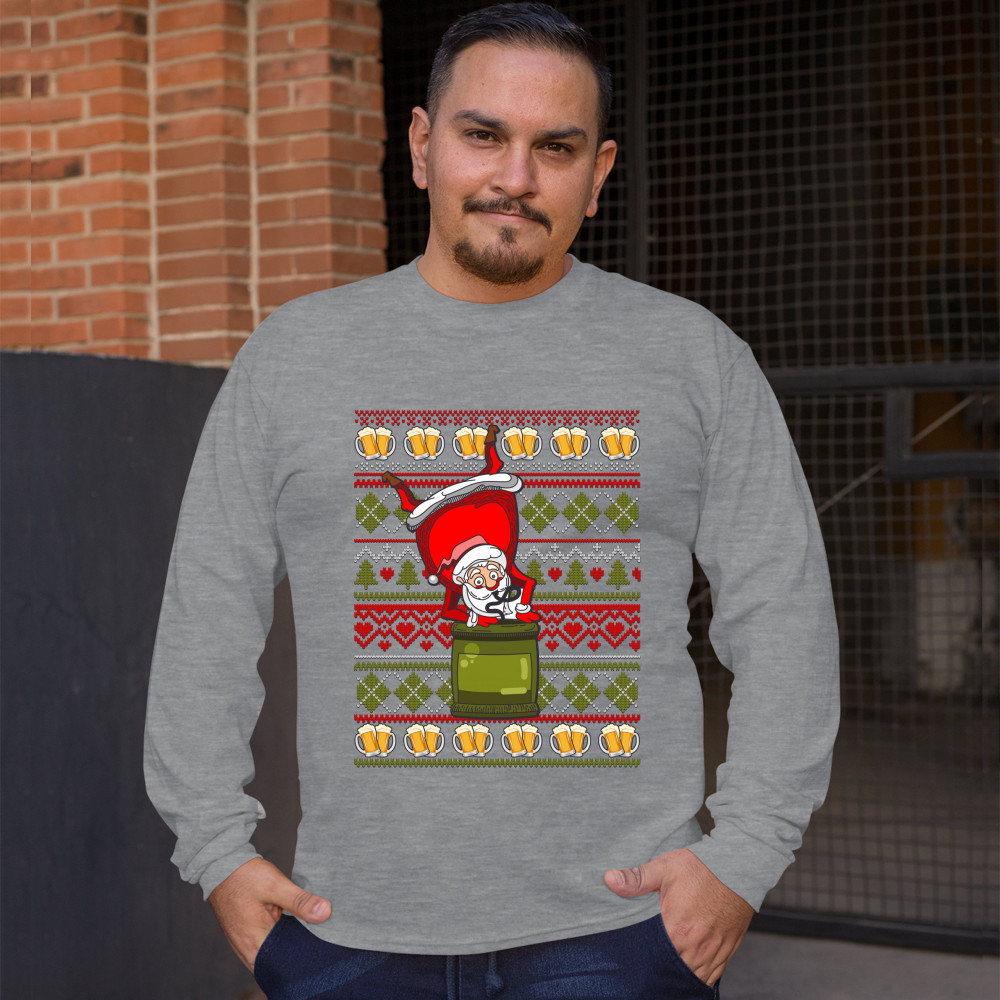 SANTA CLAUS KEG STAND long sleeve t-shirt christmas ugly sweater beer drinking gray