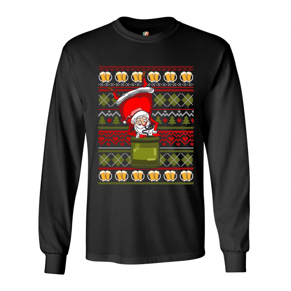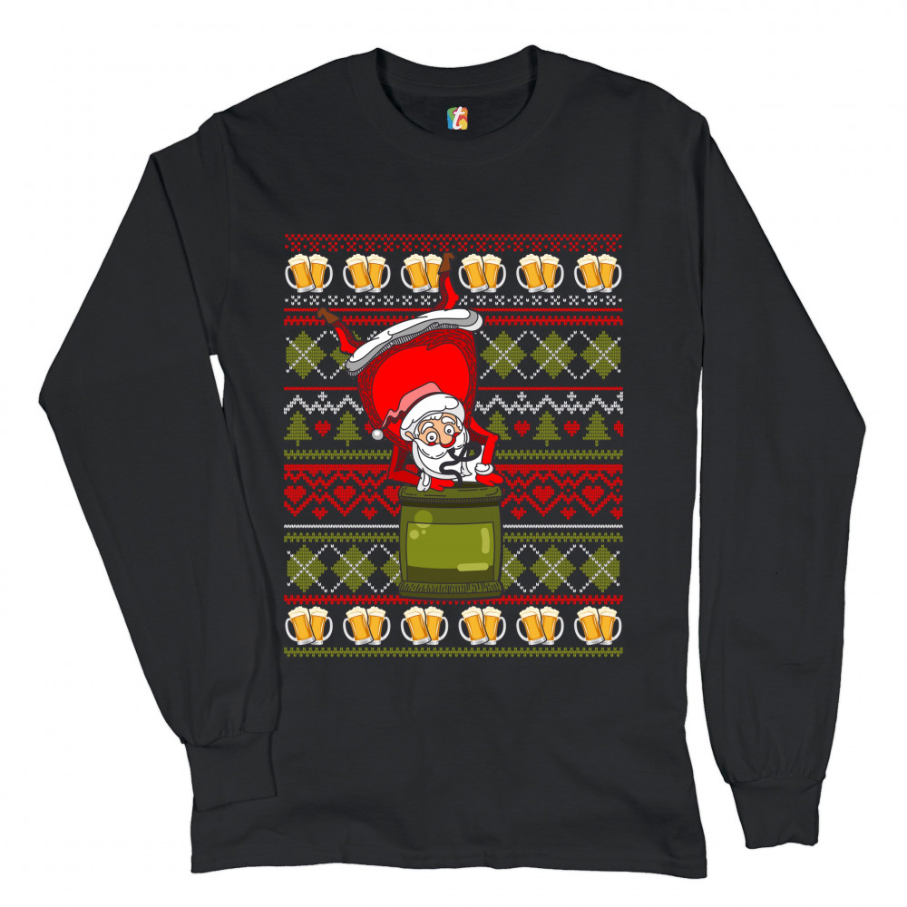SANTA CLAUS KEG STAND long sleeve t-shirt christmas ugly sweater beer drinking black