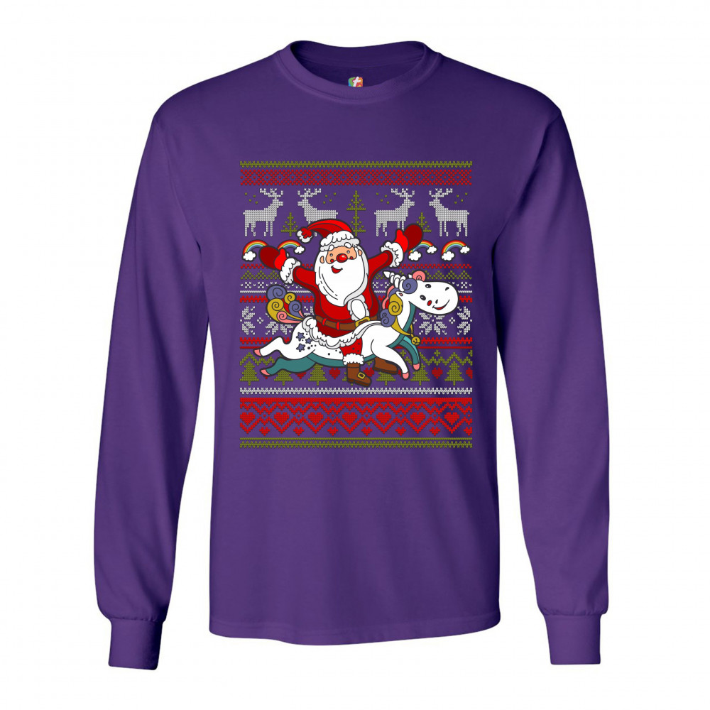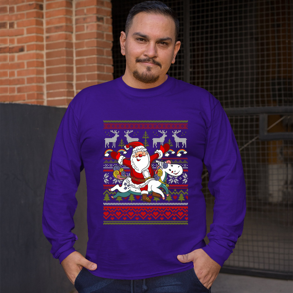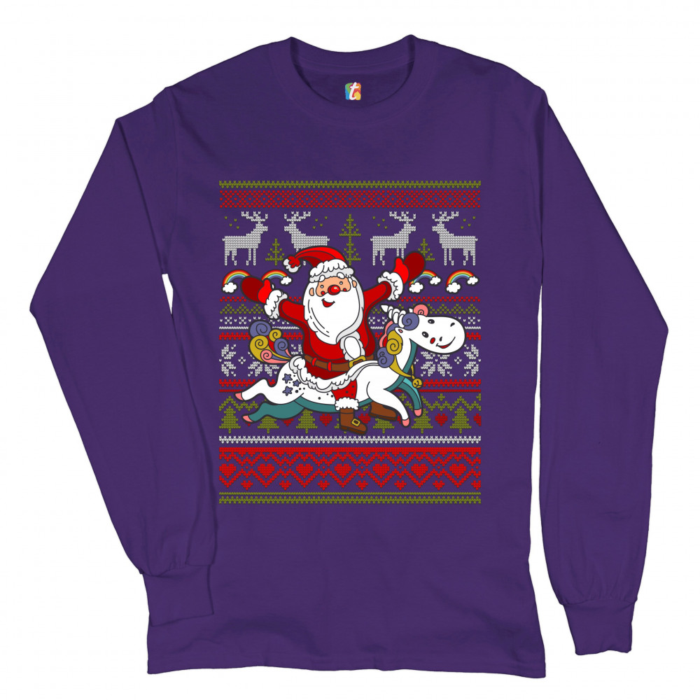 SANTA CLAUS RIDING A UNICORN long sleeve t-shirt merry christmas ugly sweater purple